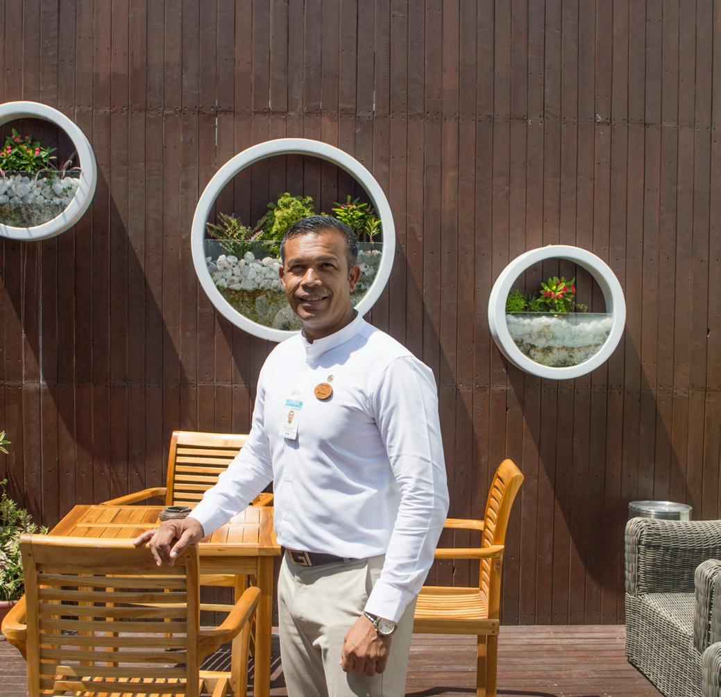 One&Only resorts are known the world over for creating memorable experiences through a distinctive style and personality borne of each local culture, genuine hospitality and an injection of captivating energy. One&Only Reethi Rah offers guests an unrivalled level of style, exclusivity and once-in-alife-time experiences, while inspiring extraordinary journeys for the soul. As an innovative luxury brand, we have a unique and personalised way of welcoming our guests. Our hand on our heart welcome is recognized world-wide as the One&Only welcome gesture; which demonstrates a sense of genuine and kind hospitality. As the resort airport representative, I am the first point of contact between our guests and the resort, so I have the great opportunity to make that first and everlasting impression by welcoming the guests from their flight in true One&Only style.