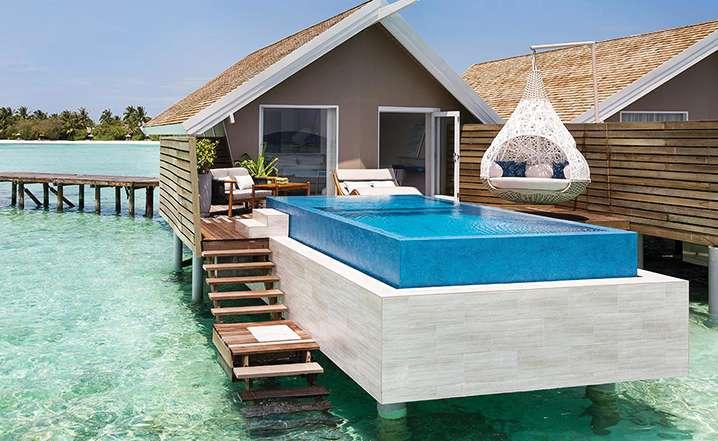 stretch of private beach, each hideaway boasts large infinity-edge pools, dining pavilions, expansive wooden sundecks and ample lounging areas complete with swinging daybeds, hammocks and sun loungers. All villas feature his and hers walk-in wardrobes, rain showers, outdoor showers and over-sized bathtubs big enough for two, whilst sunken glass bottom bathtubs in the over water villas and residences offer a mesmerising view of the crystal-clear ocean. All villas and residences are serviced by a personal Villa Host 24 hours a day.