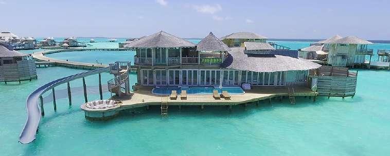 Soneva Fushi inspires the imagination with 63 spacious beachfront villas, ranging in size from one to nine bedrooms, hidden among dense foliage and located within the Baa Atoll UNESCO Biosphere Reserve. Choose from nine different dining options, five hundred wines and 11 types of pillows.