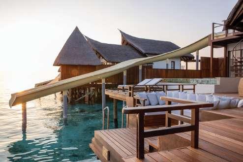 The Most coveted of the overwater accommodations - the nine Ocean Pool Suites and seven Private Ocean Reserves - have massive water slides that start from the top floor and fall right into the clear lagoon waters. The seven Private Ocean Reserves additionally have a dedicated jetty for absolute privacy.