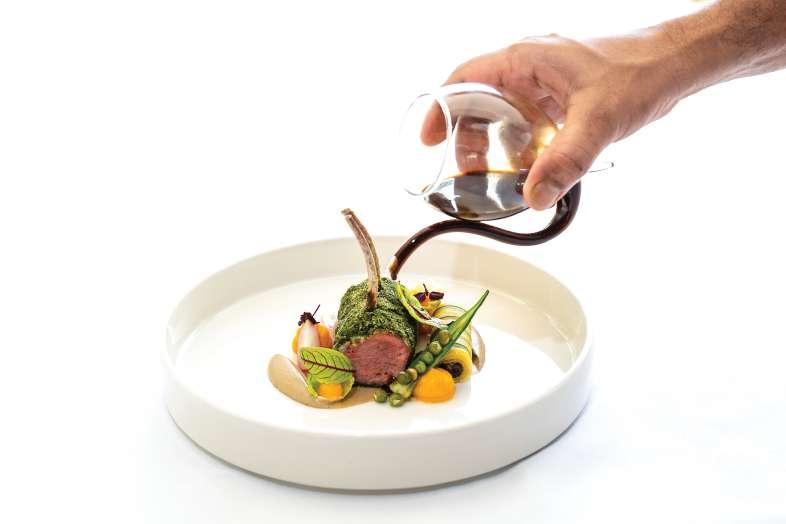 ● Plate the lamb alongside the zucchini cannelloni, and drizzle with the rich lamb jus. Pair with the velvety sweet potato purée infused with vanilla for a beautifully balanced dish.