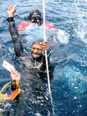 Free Immersion (FIM): 72 metres –new record (previous record 68 metres, also held by Umair) Using the rope to descend and ascend without fins.