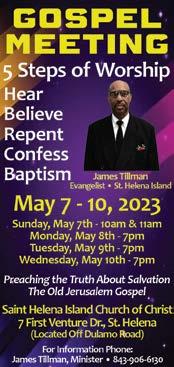 APRIL 27–MAY 3, 2023 WWW.YOURISLANDNEWS.COM COVERING BEAUFORT COUNTY PRESORTED PERMIT NO. 97 BEAUFORT, SC 29902 POSTAL PATRON LOCAL Lowcountry Life News Arts Education Health Voices INSIDE Faith Sports Local Events Military Legals Directory A2 A2–5 A6 A7 A8–9 A10 A11 B1–2 B3 B4 B5–9 B10 NEWS City of Beaufort holds ribbon-cutting ceremony for their newest park. SPORTS PAGE B1 Bridges Prep’s boys soccer team completes perfect region run. MILITARY