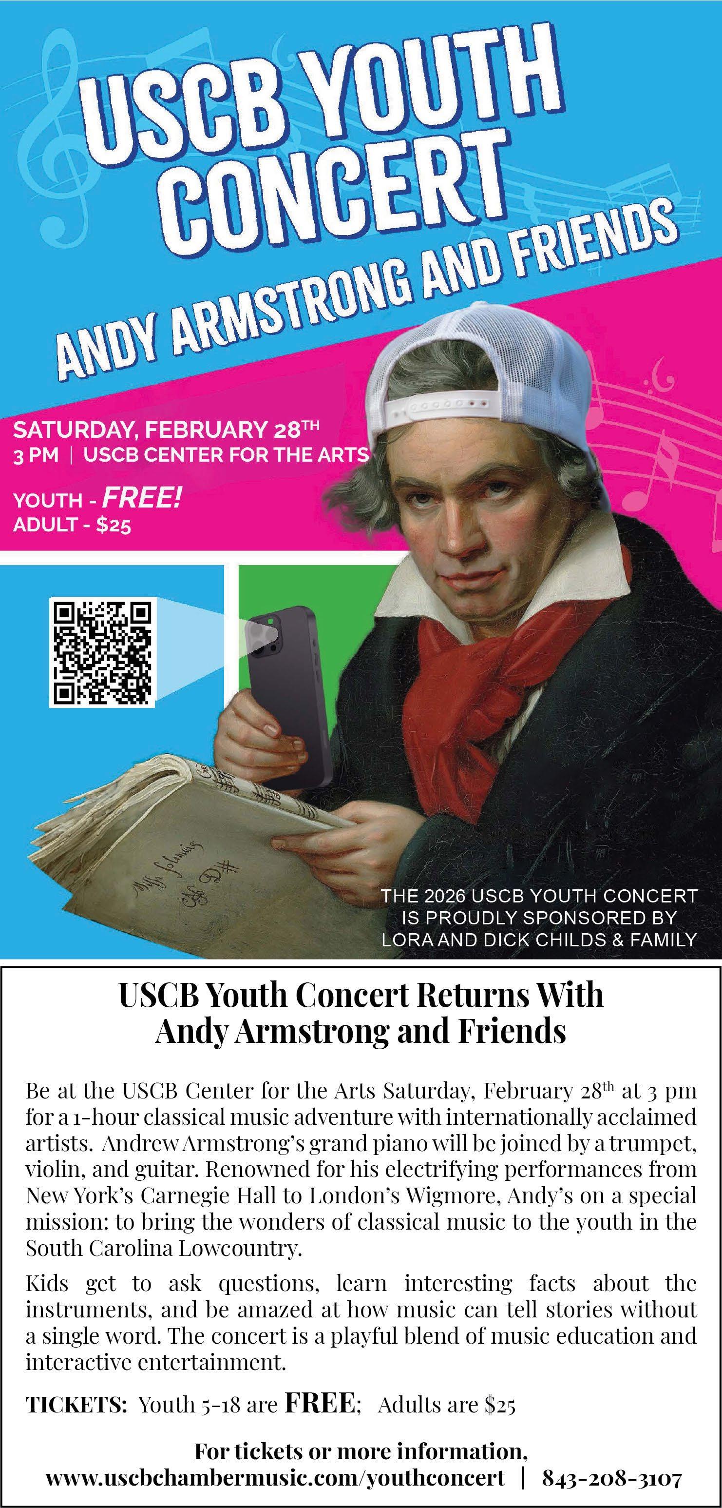 3 p.m., Sunday, Feb. 15, St. John's Lutheran Church, 157 Lady's Island Drive, Beaufort. Featuring the St. Mark’s Episcopal Church Choir & other great artists. All are welcome. RSVP to church office at office@stmarksportroyal.org. Campfire Tyler 11 a.m. to 2 p.m., Sundays, The Fillin’ Station, Lady’s Island. Lowcountry Wind Symphony rehearsals 7 to 9 p.m., Wednesdays, Beaufort