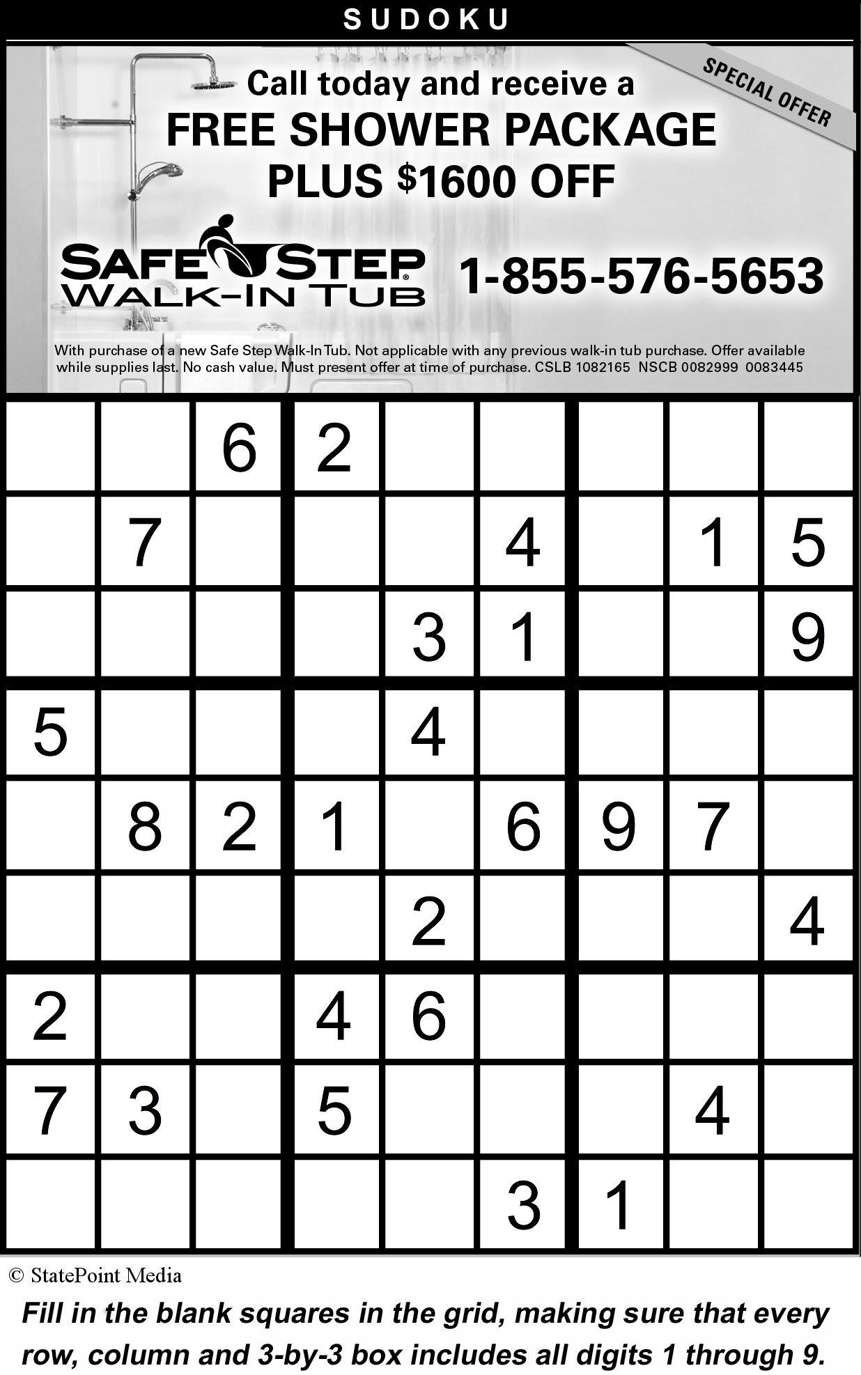 Safe Step. North America’s #1 WalkIn Tub. Comprehensive lifetime warranty. Top-of-the-line installation and service. Now featuring our FREE shower package and $1600 Off for a limited time! Call today! Financing available. Call Safe Step 1-877-8520368