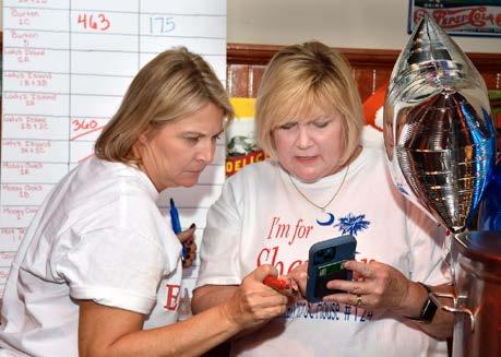 State Rep. Shannon Erickson (R-124), right, and campaign manager Angie Peterson go over early election results during the Beaufort County Election Watch Party on Tuesday night at Bricks on Boundary Street. Bob Sofaly/The Island News
