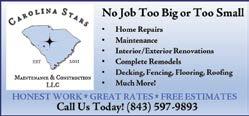 1001 Bay St, Beaufort, SC 29902 open Mon-Sat 10-5, Sun. by chance furniture, home decor & more (843) 379 4488 Allison & Ginny DuBose, Owners aldubose@yahoo.com • www.baysttreasures.com FURNITURE / HOME DECOR Manufactured Housing Insurance 102 Sea Island Parkway, Suite 0 • Lady's Island, SC 29907 Fax: 843-524-6928 John D. Polk: 843-524-3172 • Leslie Lynam: 843-524-3172 polkagency@gmail.com MOBILE HOME INSURANCE John D. Polk Agency A U T O Site Built Homes GARDEN CENTER 1 Marina Blvd. • Beaufort • 843-521-7747 www.LowCoGardeners.com • Mon-Sat 8-6 Retail Garden Center Serving Beaufort & LowCo Areas Visit Our Retail Garden Center Plants • Flowers • Gifts • Coffee Other Services Include: Plant Design • Consultation Install • Landscape Maintenance PRESSURE WASHING Pressure Washing • Window Cleaning Soft Roof Wash • Residential & Commercial 843-522-3331 CHSClean.com Locally Owned and Operated Furbulas Dog Grooming andPet Sitting Brittany Riedmayer 843-476-2989 • 843-522-3047 furbulasdoggrooming@hotmail.com Member of National Dog Groomers Association of America PET SERVICES ROOFING DA Roofing Company Donnie Daughtry, Owner Call us for ALL of your roofing needs. New Construction, Residential and Commercial, Shingles, Metal, Hot Tar & Hydrostop. All repairs and new additions. FREE ESTIMATES 843-524-1325 WINDOW TINTING TOP-Quality Window Tinting Services for Your Home, Business & Automobile 843-525-1710 www.lowcountrywindowtint.com FEED & SEED PET SUPPLIES COLE’S BIRD SEED LOCAL HONEY GOAT SOAP • CBD OIL LAWN & GARDEN NEW OWNERSHIP & NEW INVENTORY 347 Sea Island Parkway, Lady’s Island, SC 29907 HOME CARE SERVICES PEST CONTROL residential commercial real estate 843-379-0185 www.BeaufortPestControl.com TRAILER REPAIR COINS AND COLLECTIONS WANTED : Southeastern Coin Exchange FL, GA, & the Carolinas. Call “Guy” at 843-986-3444. Free appraisals. Highest prices paid. Over 60 years experience. Licensed. Private appointments available. COINS & COLLECTIONS FAMILY SERVICES Subscribe! Safe Direct Delivery To Your Mailbox! Receive The Island News Every Week & Lowcountry Weekly Every Other Week! ONLY $12 per Month or $100 per Year CALL 888-475-6397 That’s 888–ISL–NEWS Or Go Here! Or Here: https://yourislandnews.com/subscribe/ Beaufort’s Hometown Newspaper & { Opinion, Arts, Culture, Lifestyle, Cuisine } CONSTRUCTION DNA & OTHER TESTING SERVICES HEALTH INSURANCE 2023 Open Enrollment Healthcare.Gov and Medicare Advantage Insurance 69 Robert Smalls Parkway • Beaufort Call us today at 843-521-7819 mdburns.com • mike@mdburns.com OPEN ENROLLMENT Book Your Life Passages In We Run Classified & Display Advertising In the Following Categories: •Engagements •Weddings •Births •Legals •Death Notices •Obituaries For information contact Amanda Hanna 843-343-8483 or Amanda@LCWeekly.com CHIMNEY SERVICES O. W. Langford, Jr. 843-812-7442 843-441-9162 Ask about our home services! Top HatChimney Services