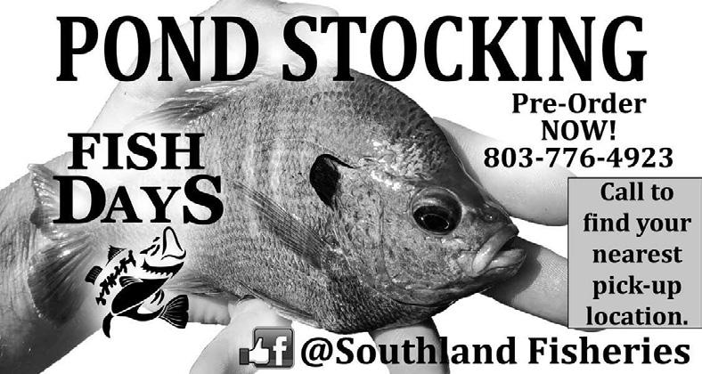 ANNOUNCEMENTS DONATE YOUR CAR TO KIDS. Your donation helps fund the search for missing children. Ac cepting Trucks, Motorcycles & RV’s , too! Fast Free Pickup – Running or Not – 24 Hour Response –Maximum Tax Donation – Call (888) 515-3810 BATHROOM RENOVATIONS. EASY, ONE DAY updates! We specialize in safe bathing. Grab bars, no slip flooring & seated showers. Call for a free in-home consultation: 844-524-2197 Tuesday, September 20, 2022 is the last day to re deem winning tickets in the following South Car olina Education Lottery Instant Games: (SC1347) CA$H IN!; (SC1363) CAROLINA RICHES; (SC1352) $200,000 BONUS BUCKS Portable Oxygen Concentrator May Be Covered by Medicare! Reclaim independence and mobility with the compact design and long-lasting battery of Inogen One. Free information kit! Call 833-230DENTAL8692 INSURANCE from Physicians Mutual Insurance Company. Coverage for 350 plus proce dures. Real dental insurance – NOT just a discount plan. Do not wait! Call now! Get your FREE Dental Information Kit with all the details! 1-855-397-7030 www.dental50plus.com/60 #6258 STOCK YOUR POND EVENT- Coming to a store near you soon! Grass Carp, Coppernose Bluegill, Shellcracker, Redbreast, LM Bass, Channel Cats, Gambusia. Must Pre-Order Min. 7 days ahead. Southland Fisheries 803-776-4923.