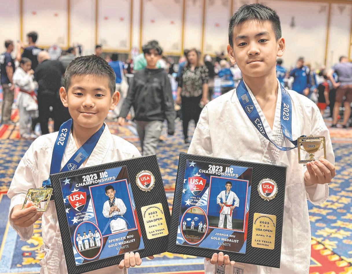 BY ANNABEL HOFMANNTwo Great Neck school kids brought home gold medals from the USA Open & Junior Karate International Cup held in Las Vegas from April 7-9. Brothers Joshua Niu, 11, and Spencer Niu, 9, won both the U.S. Championship and the World Championship in their respective age groups.