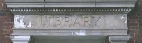 constructed Floral Park Village Hall. The entrance to the Library was located where the Police Department entrance is today. Pictured is the word “Library” which was etched in concrete and hidden from view until recently when a restoration project revealed it. Above the entranceway is a concrete medallion with an open book displayed most likely installed at the time the library signage was created.