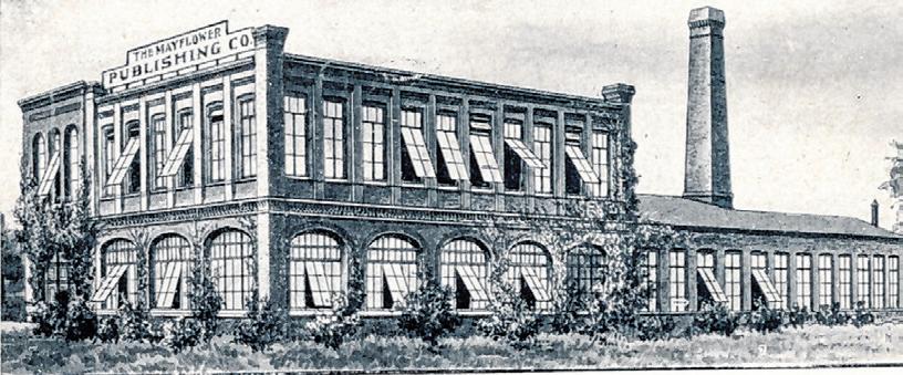 The Printing house of the Mayflower Publishing Company was part of a complex of buildings that John Lewis Childs had constructed to print the 150 + catalogs for his seed business as well as his monthly magazine , The Mayflower. This beautiful brick building was built in 1886 and located just north of the Long Island Rail Road tracks several feet and freight trains loaded with huge rolls of paper weighing tons would be unloaded from the