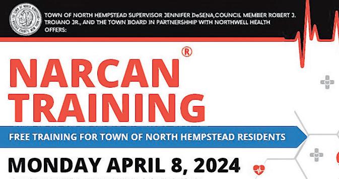 North Hempstead Town Supervisor, Jennifer DeSena and the Town Board are pleased to announce that the town is partnering with Northwell Health to hold a free opioid overdose prevention workshop for residents on Monday, April 8 at 3 p.m. at the “Yes We Can” Community Center, 141 Garden Street in Westbury.