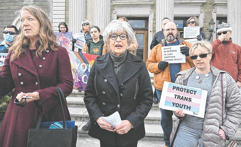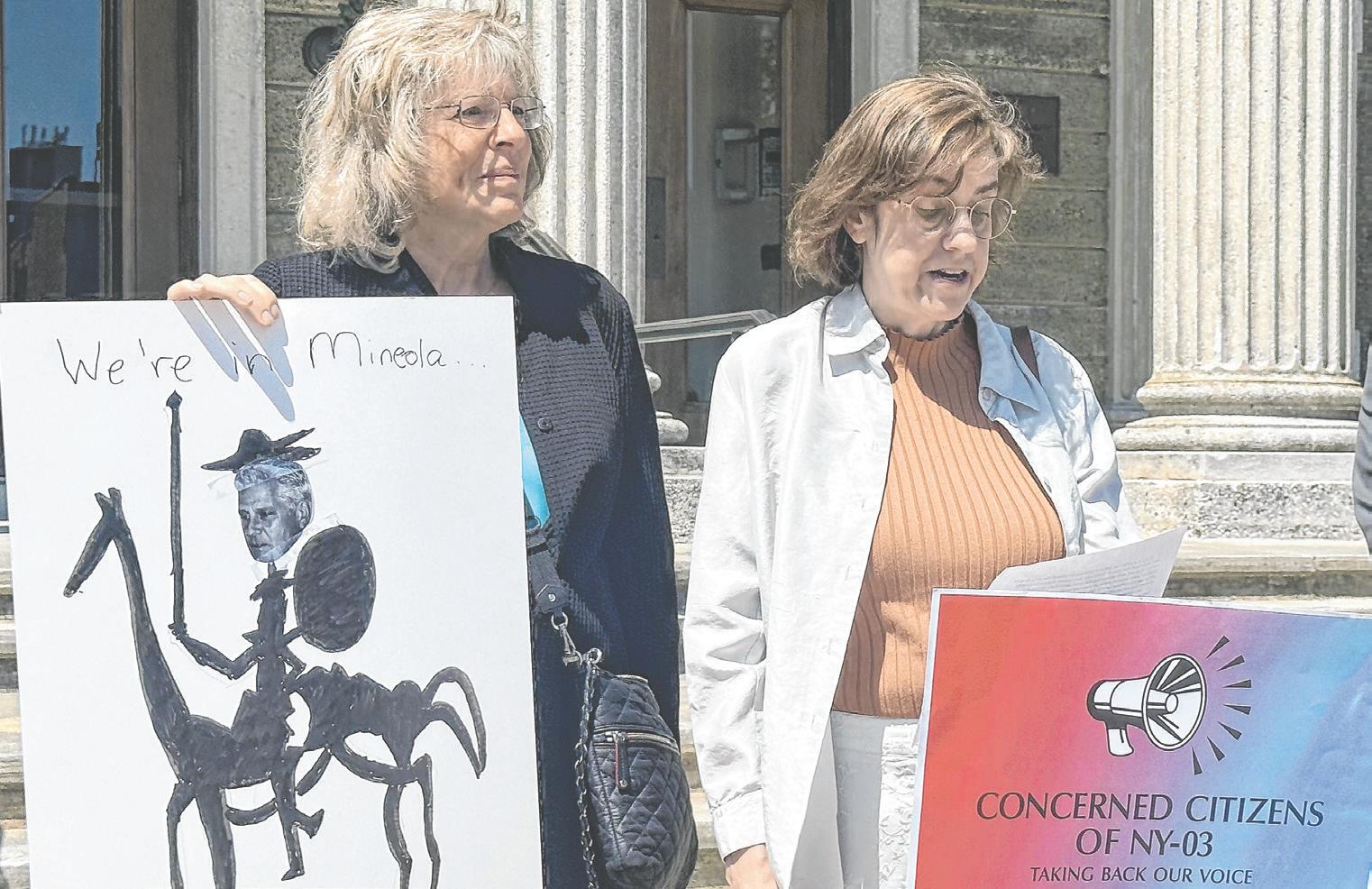 Protestors march outside of Rep. Anthony D’Esposito’s Garden City office. See story on page 8.