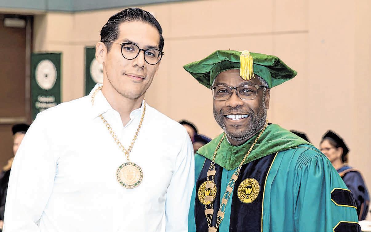 PHOTO BY SUNY OLD WESTBURY SUNY Old Westbury President’s Medal for Scholarship winner Willie N. Verastegui with SUNY Old Westbury President Timothy E. Sams