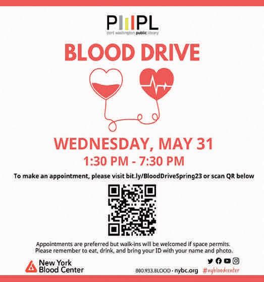 BloodDriveSpring23 to make an appointment. Port Washington