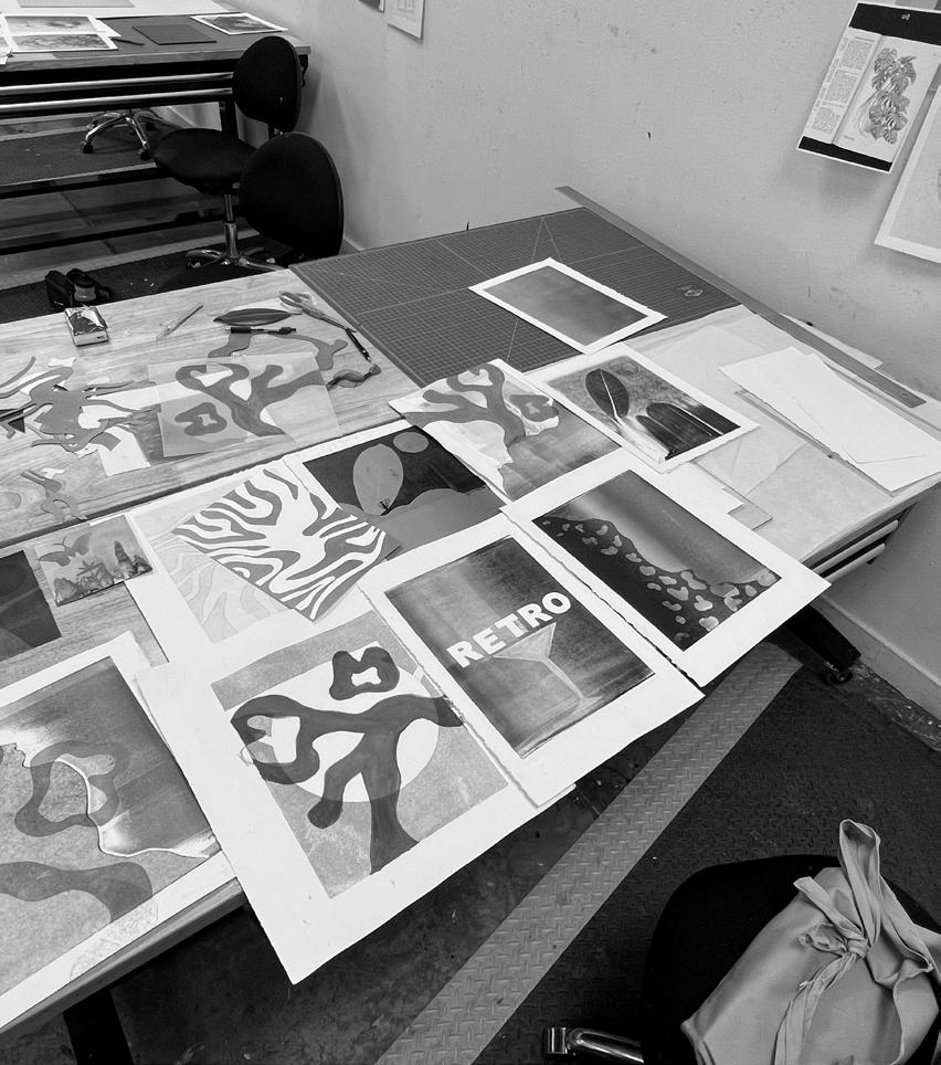 Patience, steadiness, and concentrationn are vital to monoprinting. The process involves many steps, so it’s important to take your time with each piece.