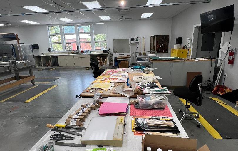 At Arrowmont, I took a printmaking class, specifically mono-printing, taught by Kaleena Stasiak. I had no prior knowledge of printmaking or its history, but taking this class has broadened my design skills and opened my eyes to using the world as lenses to make something that becomes meaningful to life. In this class, we made stencils, mixed different types of ink, and used different types of paper, such as kozo paper, to print our stencils. I thought it was an interesting process because everything was done by hand, from cutting out the stencils to mixing different colors, and being patient with the process.