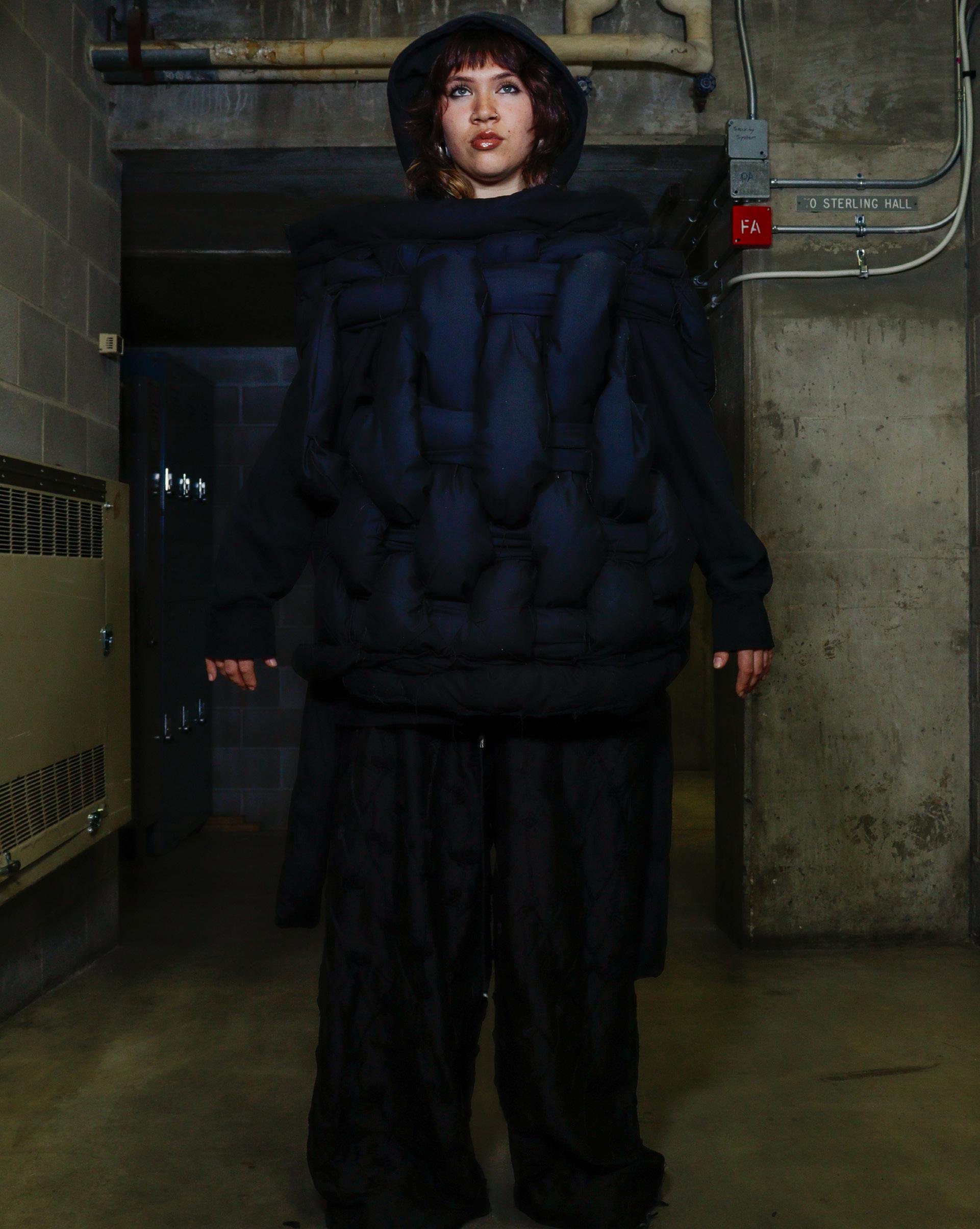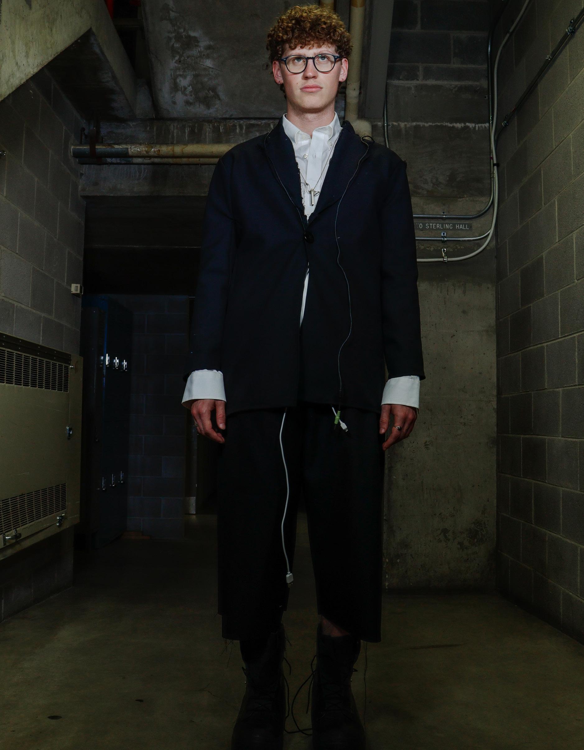 I’m a Senior studying Textiles and Fashion Design with an intense background in Fine Arts. I am from Madison, WI and am extremely excited to be partaking in my first ever runway show as a designer. My collection aims to incorporate traditional silhouettes and construction of both men’s and women’s wear into a single style meant to be worn without gender. I prioritize enhancing androgyny through sophisticated patterning, detailed sketching and structured design. The collection showcases hand embellishments and slow-process pieces highlighting this time-based craft.