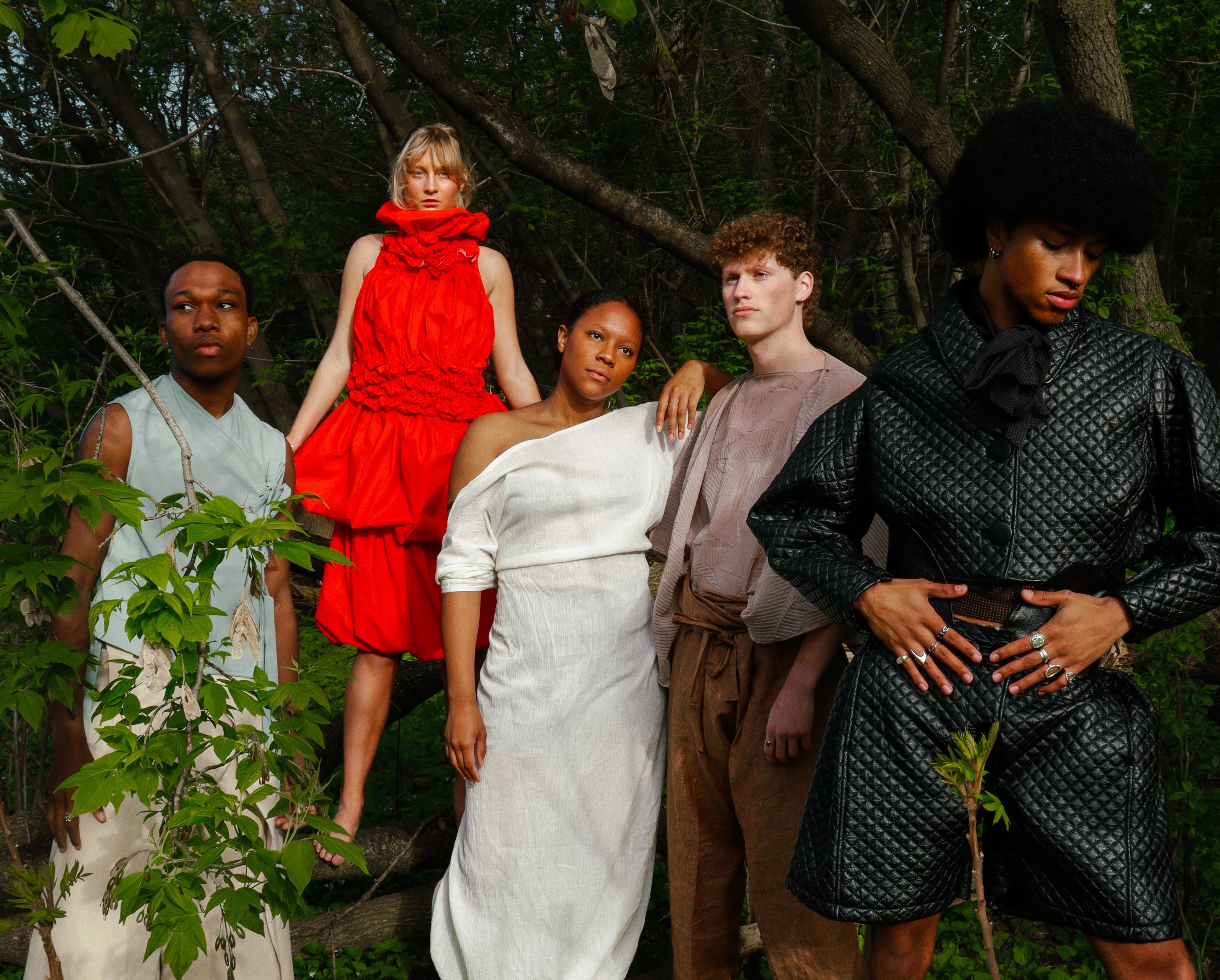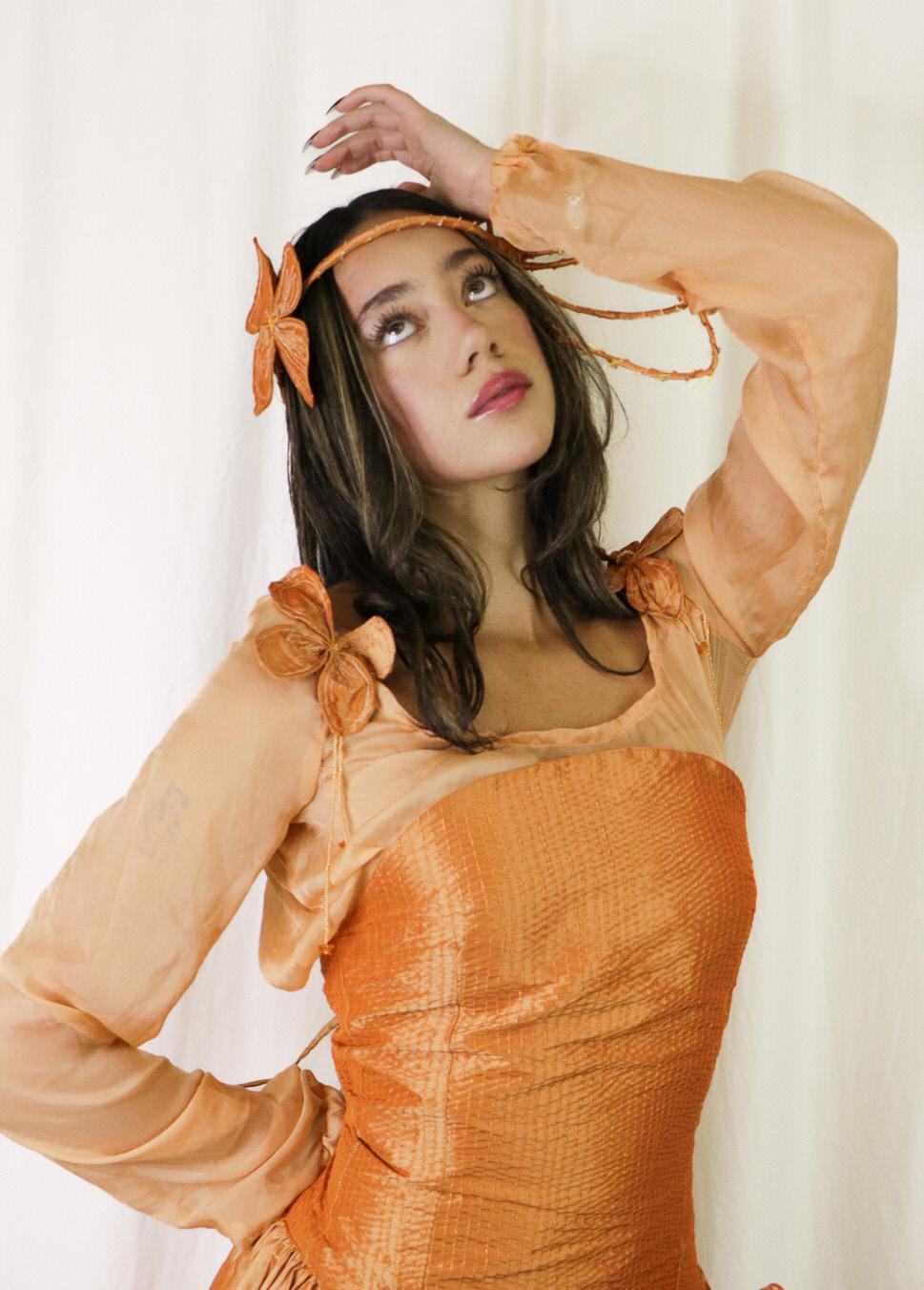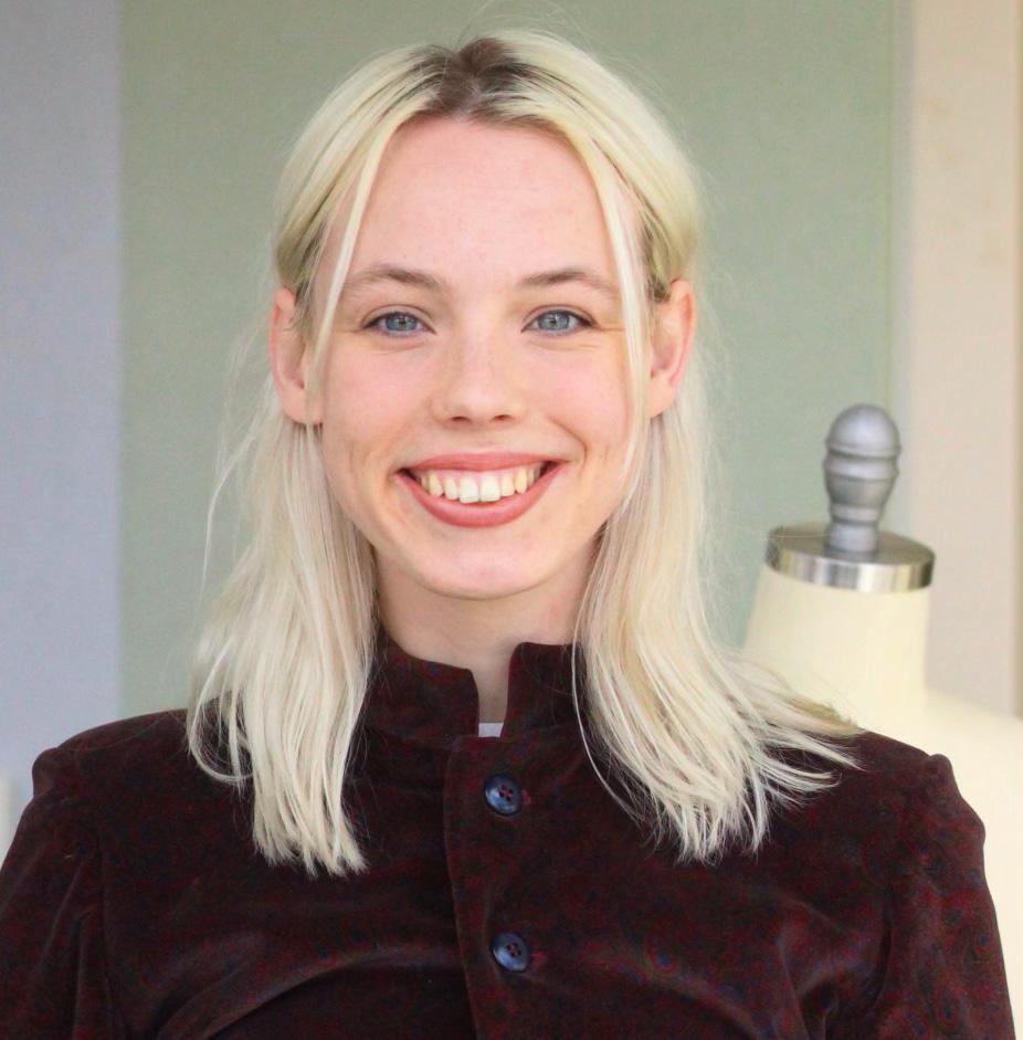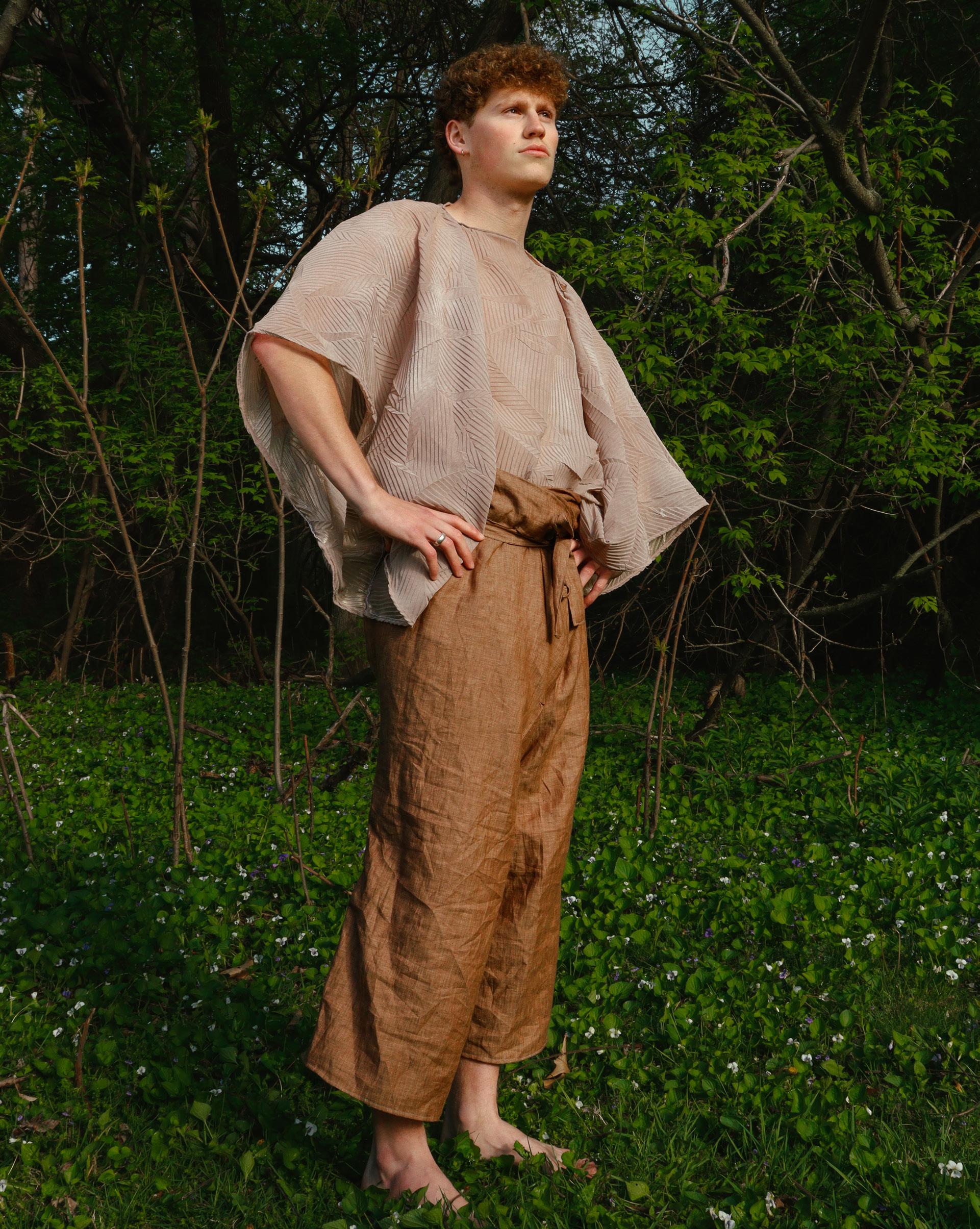 A class of 2024 Textile and Fashion Design student, Robyn George is the Creative Director of Numbers Design Solutions and founder of The Issue. Her Spring/Summer 2025 collection titled “Let the Flowers Speak” explores themes of gender identity while drawing visual inspiration from the natural world. In line with her goals surrounding environmental sustainability, each look in this collection is made using upcycled material or employs a zero-waste or size-adaptive design.