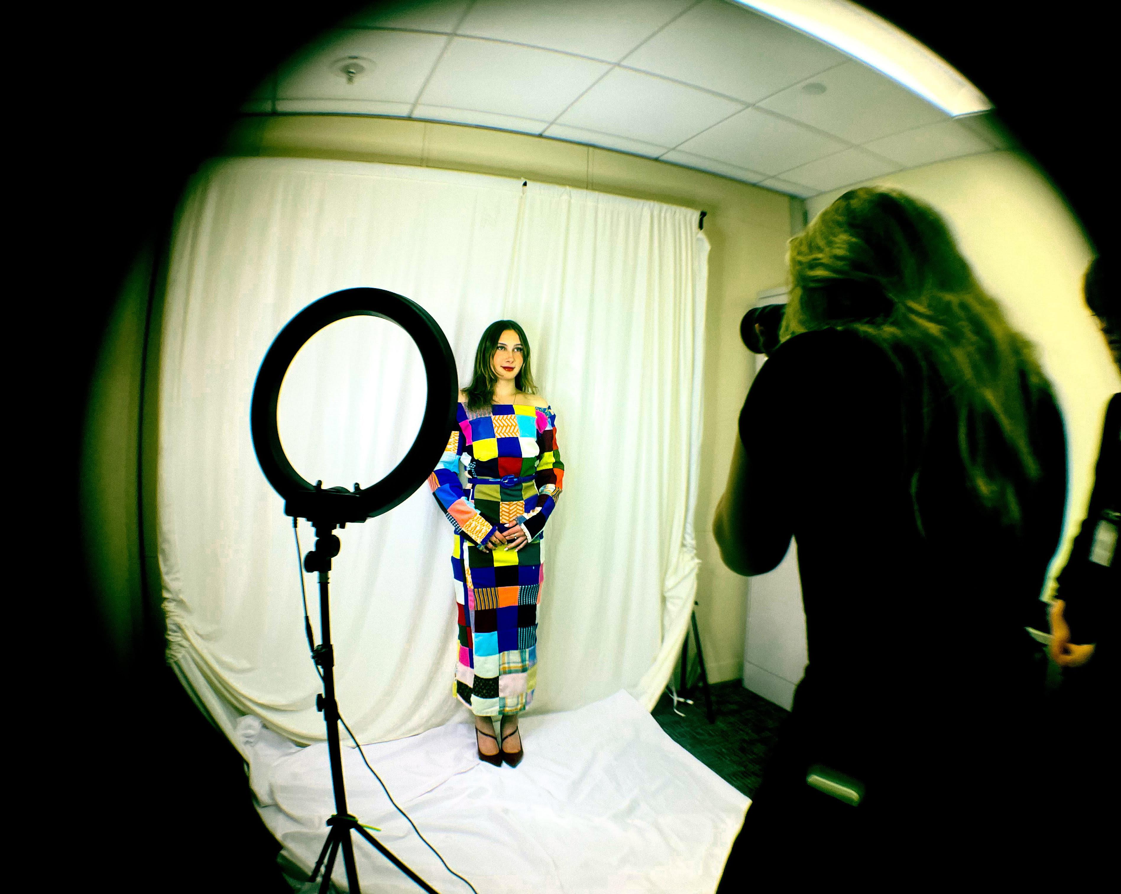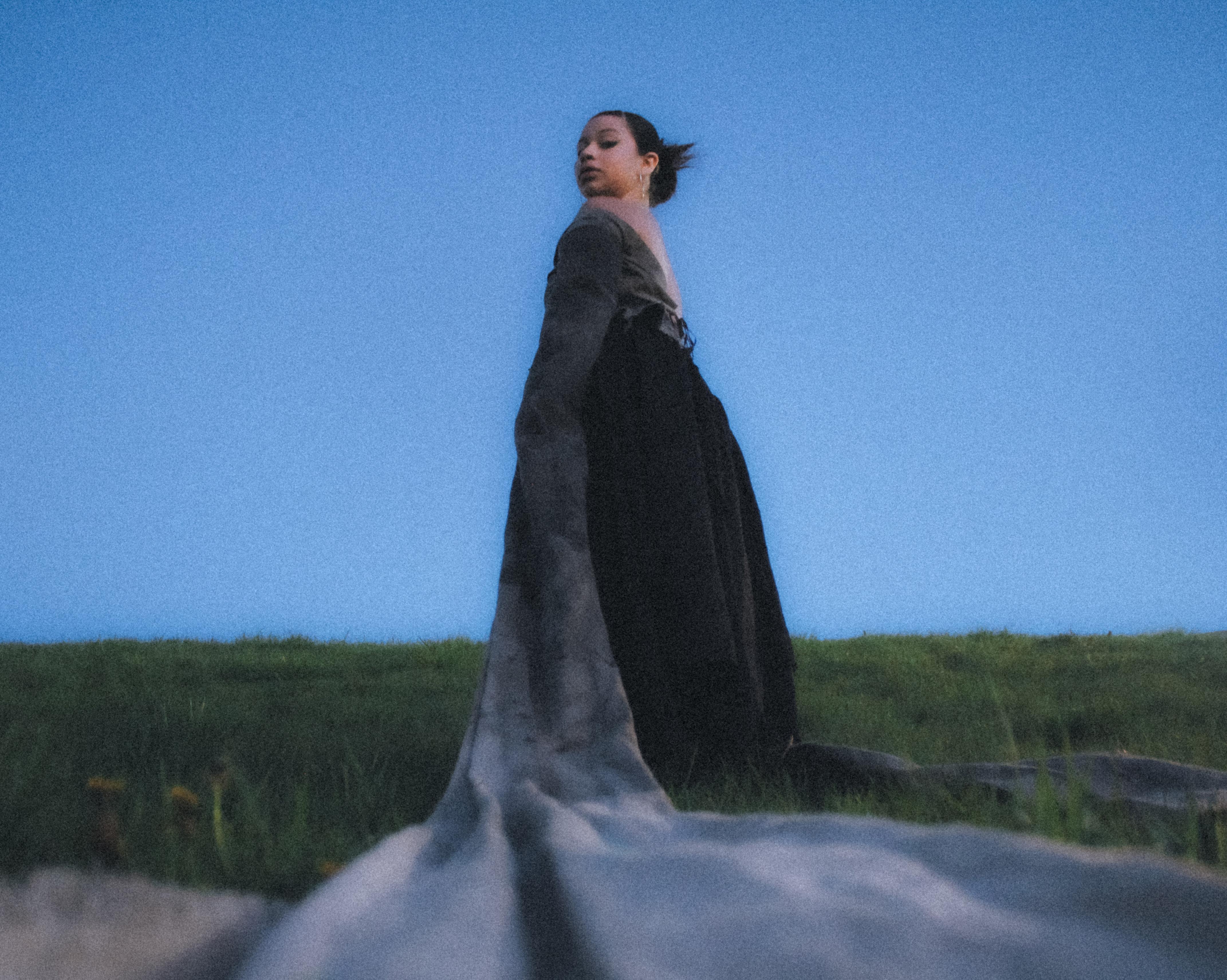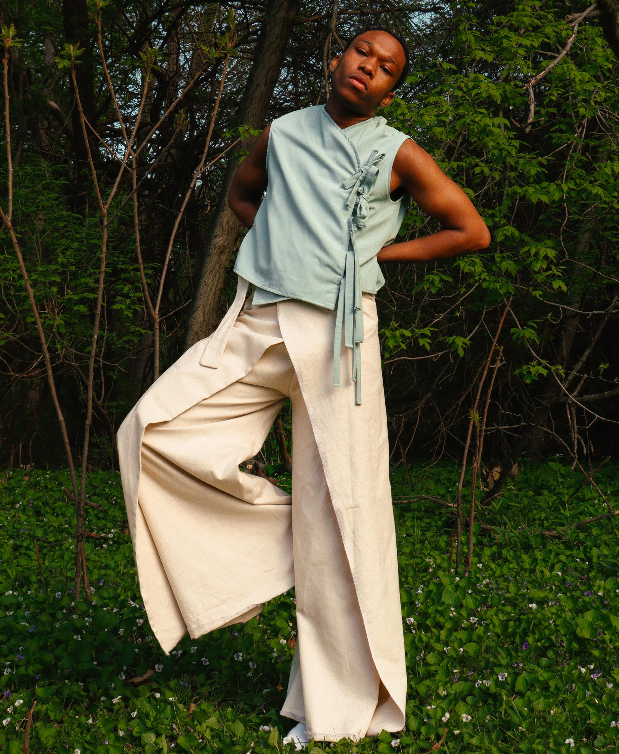 A class of 2024 Textile and Fashion Design student, Robyn George is the Creative Director of Numbers Design Solutions and founder of The Issue. Her Spring/Summer 2025 collection titled “Let the Flowers Speak” explores themes of gender identity while drawing visual inspiration from the natural world. In line with her goals surrounding environmental sustainability, each look in this collection is made using upcycled material or employs a zero-waste or size-adaptive design.