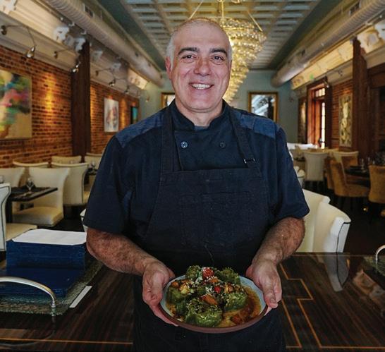 Chef Raffaele Dall’Erta holds a plate of ravioli inside Hamptons. Dall’Erta leads the culinary program at Hamptons, La Piazza and Rafters in the heart of downtown Sumter, bringing seasonal ingredients and fresh protein and produce to the table. While menu items shift based on season, ingredient availability and the chef’s experimental mind, a form of ravioli can usually be found. This dish is made with short rib and cheese. More on Hamptons and Dall’Erta’s culinary creations can be found inside the pages of this magazine. Photo by Richie Weber.