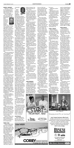 cosmotology. While living in Maryland, she was employed FOGLE with B.W.I. International Airport and Maryland House of Corrections. Upon returning to South Carolina, Wanda held various jobs: Columbia Police Department, Benedict College Campus Police and most recently Allen University Campus Police. Wanda departed this earthly life on Tuesday, Feb. 5, 2013, at William Jennings Bryan Dorn VA Hospital, Columbia. She was preceded in death by two brothers. She leaves to cherish her memories: her husband, Robert Fogle of the home; a son, Jaronte McFadden of Columbia; three stepdaughters, Jada, Tyease and Zikeya; three granddaughters, Shakiya, Sha’monita and Jazaya, all of Columbia; six sisters, Diana (Earl) Howell of Summerton, Stacy (Willie) Tindal of Baltimore, Md., Edna (Cornell) Walters of Summerton, Malcenia (Charles) Mack of Manning, Henrietta Boxies of San Antonio, Texas, and Margaret Andres of Willford, Conn.; three brothers, Marion (Louise) Andrew of Summerton, Albertus and Henry Jr. of Hartford, Conn.; her mother-in-law, Mary Fogle; one godchild, Kayla Williams; special friends, Gail Williams and Marvin Marrow; mother Louise Walters; and a host of nieces, nephews, other relatives and friends. Funeral services will be held at 1 p.m. on Monday, Feb. 11, 2013, at Historic Liberty Hill A.M.E. Church, Summerton. Dr. Leslie J. Lovett, pastor, officiating. Final resting place will be the church cemetery. Floral bearers will be the Class of 1990, and pallbearers will be the campus police of Allen University and Benedict College. The body will be placed in the church one hour prior to the service. Viewing for Mrs. Fogle will be held from 1 to 7 p.m. on Sunday, Feb. 10, 2013, at Dyson’s Home for Funerals. The family is receiving friends at the home of her sister and brother-in-law, Edna and Cornell Walters, 1045 Daphne Lane, Summerton, and at the home, 14 Wild Iris Court, Columbia. SALLIE PHILLIPS Sallie Phillips was born Oct. 20, 1944, to the late Arthur and Mattie Richardson Mc-