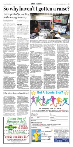 So why haven’t I gotten a raise? You’re probably working in the wrong industry BY BERNARD CONDON AP Business Writer NEW YORK — If you hope to get a raise that finally feels like one, it helps to work in the right industry. Historically, at this stage in the economy’s recovery, pay would be rising in most sectors. But five years after the Great Recession officially ended, raises remain sharply uneven across industries and, as a whole, have barely kept up with prices. Overall pay has been rising about 2 percent a year, roughly equal to inflation. The best raises have gone to workers with specialized skills in a few booming industries — energy, transportation, health care, technology. Those in retail or government have been less fortunate. “If you’re in an in-demand field, with the right skill set, the chance of getting a raise is much higher,” says Katie Bardaro, an economist at PayScale, a pay-tracking firm. Typically in a recovery, raises in a few industries lead to raises in others as workers become confident enough to quit one job for another for more pay. This time, the subpar recovery has slowed pay gains. Technology has played a role, too. It’s lifted pay for people who work, for example, with programs that sift data from your mobile devices so companies can pitch products matched to your interests. Yet workers in industries upended by the Internet, such as retailers left behind by e-commerce, have been hurt. Here are industry standouts — and laggards — on pay:
