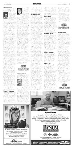 ARNETT BURGESS Arnett Burgess, husband of Dorothy Burgess, was born Jan. 28, 1937, in Sumter County to the late William and Ailene Lee Burgess. He departed this life on Tuesday, June 23, 2015, at BURGESS Tuomey Regional Medical Center. He received his education at Lincoln High School and Central Carolina Technical College. He became a member of New Bethel Missionary Baptist Church in Sumter at an early age. After a four-year term in the United States Navy, he began working at VB Williams from where he retired. He was a member of the Liberty Hill Masonic Lodge No. 357. He leaves to cherish his memories: his son, Ronald (Lisa) Burgess; four grandchildren, Rolandra (Derrick) Williams, Ronzlynn Burgess, Rhonda (Desmond) Blanding and Roland Burgess Jr; two great-grandchildren, Daymian and Damiyah Burgess, all of Sumter; one brother, Harry Burgess, of Sumter; one sister, Ann Burgess of Washington, D.C.; two sisters-inlaw, Sally (David) Hasty and Irabelle Choice; three brothers-in-law, Raffield (Willie Mae) Choice, Colel (Francis) Choice and Larry (Gloria) Choice, all of Sumter; and a host of nieces and nephews, other relatives and friends. He was preceded in death by two sisters, Willie Mae and Barbara Burgess; one brother, Ollie “Brother” Burgess; and in-laws Raymond Choice, Louise Anderson Raffield and Minne Choice. Public viewing will be held from 2 to 6 p.m. on Monday at Job’s Mortuary. Mr. Burgess will be placed in the church at 10 a.m. Tuesday for viewing until the hour of service. Funeral services will be held at 11 a.m. on Tuesday at New Bethel Missionary Baptist Church with Pastor Willie Wright officiating. Interment will follow in Walker Cemetery. Family receiving friends at 429 Albert Drive, Sumter. Job’s Mortuary Inc., 312 S. Main St., is in charge of arrangements. Online memorials may be sent to the family at: jobsmortuary@sc.rr.com or visit us on the web at:www. jobsmortuary.net.