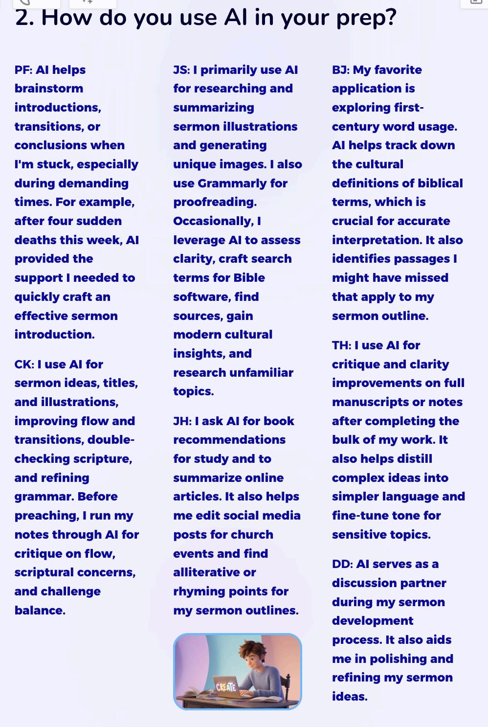 Yet there is more, AI seems to be everywhere, so we invited six preachers who use AI to different degrees.