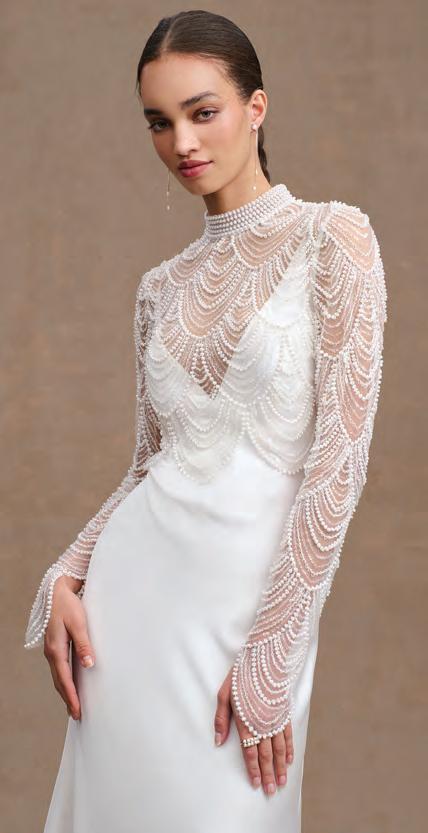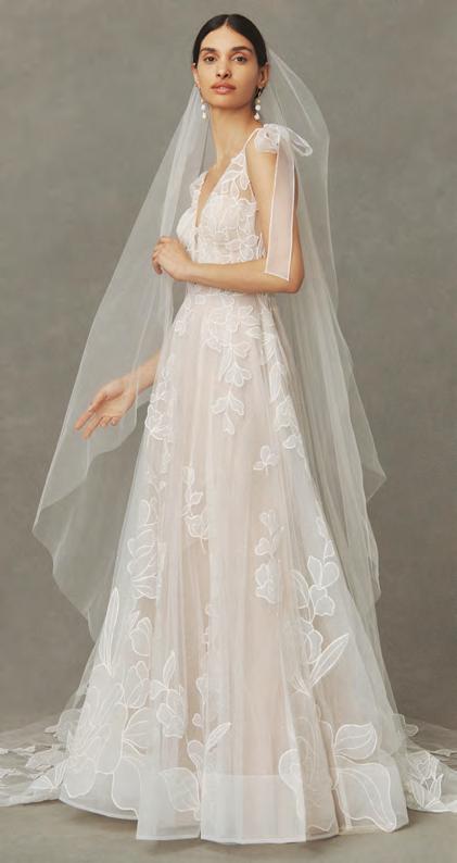 London-based artisan Paula Nadal is “the flamboyant cocktail for the arts and the artists,” she says, celebrating historic sources while creating ethical, luxury design of couture, bespoke, madeto-measure, Armour Corsets — and exquisite veils, like the Veil VI: Hand-embroidered lace, bows, pearls and crystals adorn hand-pleated cascading silk tulle. Paulanadal.com.