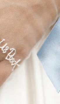 with luxurious cashmere (cotton sweatshirt and men’s options available, too). Choose from Lingua Franca’s delicious hues of cashmere and thread for customized embroidery to personalize their Mama Love Crewneck or Custom Love Socks, whether the initials of their own sweetheart, the initials of the entire bridal party, a simple heart or a just-betweenyou saying. Linguafranca.nyc.