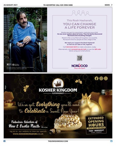 YOU CAN CHANGE A LIFE FOREVER Moshe was sent to a psychiatric institution as a child. He was never spoken about at home. Then his family discovered Norwood and everything changed. Moshe’s life is now filled with laughter, love and life. Norwood’s here for people at every stage of life. We need your support this Rosh Hashanah so that we can take on life, together. Call 020 8420 6970 to make a donation, today. Alternatively, visit norwood.org.uk/rosh or scan the QR code below using your smart phone.