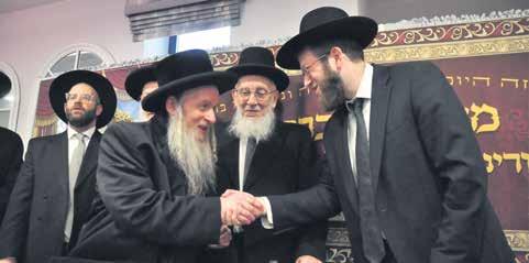 Rav Y.C Horowitz and Rabbi S Goldberg greet Rabbi Yisroel Rose