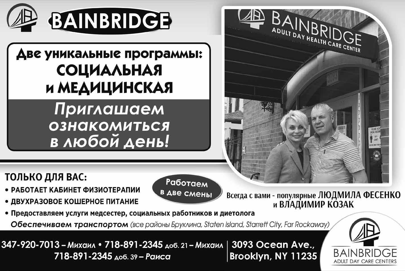 № 1596 22–29 декабря 2022 www.evreimir.com 6 В НОВОМ СВЕТЕ 1115 Avenue U Brooklyn, NY 11223 718-717-8337 ПОМОЩЬ НА ДОМУ больным и людям с ограниченными возможностями. Нуждающимся помогаем в увеличении часов. ÕÎÌÀÒÅÍÄÀÍÒ ÆÅÐÒÂÀÌ ÕÎËÎÊÎÑÒÀ ÄÎÏÎËÍÈÒÅËÜÍÀß ÏÎÌÎÙÜ ПРИГЛАШАЕМ НА РАБОТУ ХОМАТЕНДАНТОВ У НАС ХОРОШАЯ ЗАРПЛАТА, БЕНЕФИТЫ, ОПЛАЧИВАЕМ СВЕРХУРОЧНЫЕ ЧАСЫ, БОЛЬНИЧНЫЕ ДНИ, ОТПУСК, А ТАКЖЕ ВОЗМОЖНОСТЬ УХОДА ЗА РОДНЫМИ И ЗНАКОМЫМИ ПО ПРОГРАММЕ CDPAP ПОМОЩЬ ВКЛЮЧАЕТ: УБОРКУ • ПРИГОТОВЛЕНИЕ ПИЩИ • ЛИЧНУЮ ГИГИЕНУ СОПРОВОЖДЕНИЕ НА ПРОГУЛКУ И К ВРАЧУ • СМЕНУ БЕЛЬЯ • ВЫПОЛНЕНИЕ РАЗЛИЧНЫХ ПОРУЧЕНИЙ И МНОГОЕ ДРУГОЕ Сюжет фантастической реальности Борис ГУЛЬКО, Иерусалим ÏÐÎÔÅÑÑÈÎÍÀËÜÍÛÅ ÊÎÍÑÓËÜÒÀÖÈÈ È ÞÐÈÄÈ×ÅÑÊÀß ÏÎÌÎÙÜ ÏÎ ÇÀÊÎÍÎÄÀÒÅËÜÑÒÂÓ ÐÎÑÑÈÈ È ÓÊÐÀÈÍÛ: ÍÎÒÀÐÈÀËÜÍÀß ÊÎÍÒÎÐÀ íàAVENUE Z • îôîðìëåíèå ðàçâîäîâ è âåäåíèå ëþáûõ äðóãèõ ñóäåáíûõ äåë • âñòóïëåíèå â íàñëåäñòâî • îôîðìëåíèå ñäåëîê ñ íåäâèæèìîñòüþ; • ñíÿòèå ñ ðåãèñòðàöèîííîãî ó÷åòà • âîññòàíîâëåíèå äîêóìåíòîâ ÇÀÃÑ è äîêóìåíòîâ îá îáðàçîâàíèè • äîâåðåííîñòè, àóòåíòèôèêàöèÿ, àïîñòèëè • íîòàðèàëüíûå ïåðåâîäû • ñâèäåòåëüñòâî î ôàêòå íàõîæäåíèÿ â æèâûõ Îôèñû â Áðóêëèíå è Ëîíã-Àéëåíäå 718-704-8558 karina.duvall@gmail.com www.russianatty.com ÏÐÎÔÅÑÑÈÎÍÀËÜÍÀß ÏÎÌÎÙÜ Â ÂÎÏÐÎÑÀÕ ÌÅÆÄÓÍÀÐÎÄÍÎÃÎ ÏÐÀÂÀ • âîññòàíîâëåíèå àðõèâíûõ äîêóìåíòîâ è àêòîâûõ çàïèñåé; • îôîðìëåíèå íàñëåäñòâà; • îôîðìëåíèå