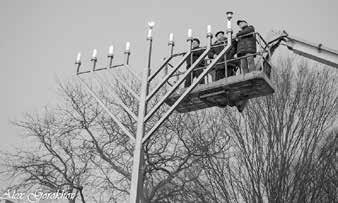 мил его с раввином Гиршей Окуневым и габаем синагоги Айзиком Либерманом. Вплоть до 1998 года синагога F.R.E.E проводила ханукальные мероприятия, используя небольшую разборную Менору, что было очень хлопотно и неудобно. Идея установки стационарной Ханукии на площади у Chase Bank постоянно преследовала раввина Гиршу Окунева. Осуществить это мечту удалось благодаря Якову Фридману, одесситу с большим еврейским сердцем. Он выполнил рабочие чертежи и сделал все расчеты на ее устойчивость в нашей климатической зоне. Когда проект Меноры прошел все проверки и согласования, до праздника оставались считанные дни. Тем не менее, благодаря упорству, целеустремленности и неимоверным усилиям, 3 декабря 1999 года была зажжена первая свеча Хануки 5760 года по еврейскому календарю. Казалось бы ординарное сооружение. Но выбор места, проектировка, согласование и строительство Ханукии выполняла не строительная компания со своим проектно-конструкторским бюро, а обычная синагога рабби Гирши Окунева, Айзика Либермана и, конечно, Яков Фридман. Весь комплекс работ по ее строительству от рытья котлована под фундамент до ее
