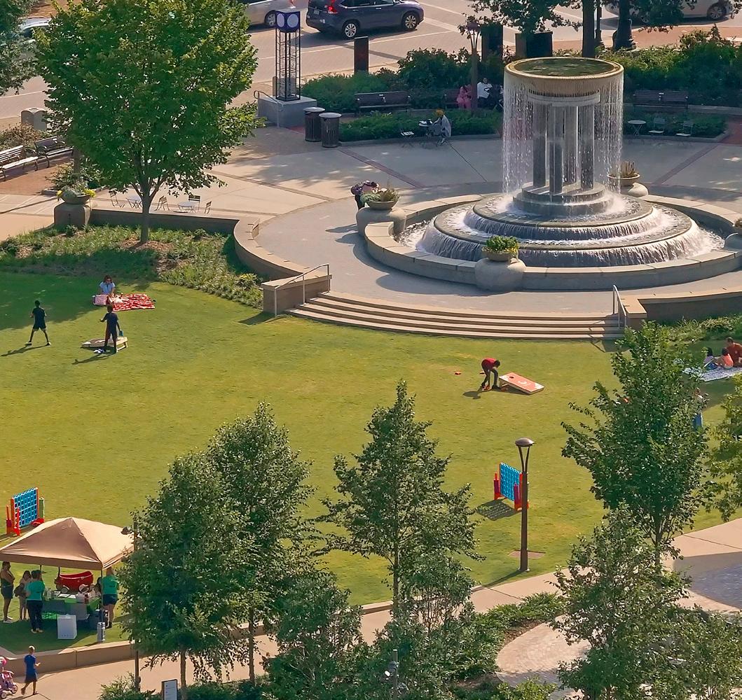 Occupying 7 acres in the heart of the city, Downtown Cary Park is a vibrant, dynamic gathering place that attracts residents and visitors of all ages. No matter your age, there is sure to be an activity just around every corner that will delight and engage. Park guests enjoy playgrounds, sports courts, and lush gardens. Four-legged guests can