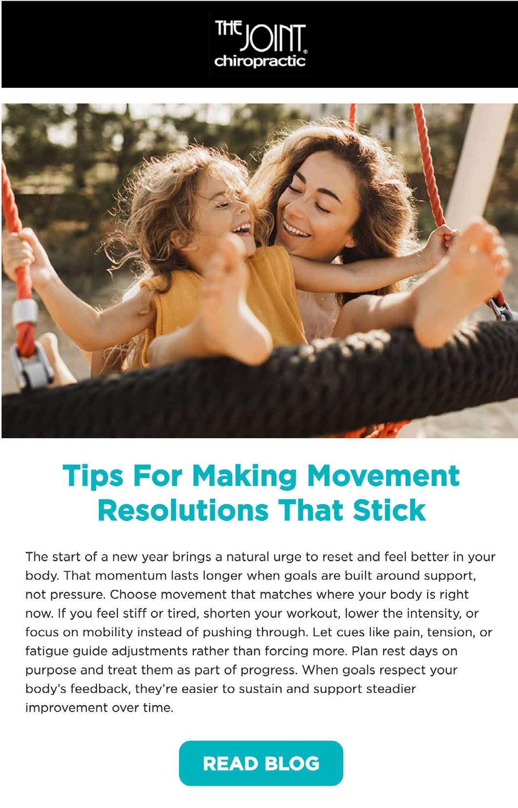 This month’s content focuses on helping patients build realistic routines that support better movement and everyday comfort in the new year. Inside is guidance on setting movement goals, simple habit-stacking strategies to make healthy routines easier to maintain, and practical tips for resetting stretching habits to support mobility and reduce tension. We’re also sharing a wellness checklist to help patients stay proactive throughout the year, along with expert insight from Dr. Dustin DebRoy, D.C., Manager of Education and Relations, on staying active while training around shoulder pain.