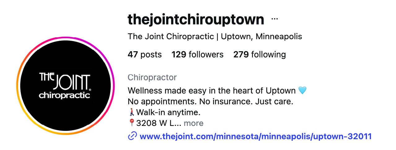 The Joint Chiropractic – Uptown in Minneapolis, MN creates content that blends education, in-clinic moments, and personality to make followers feel informed and welcomed.