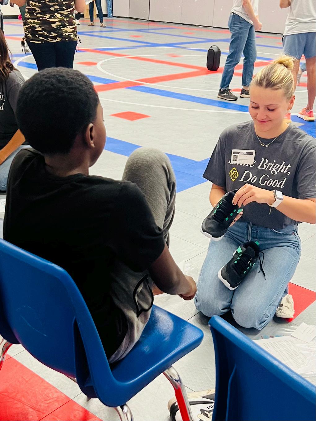 League member assisting at a Kids In Cool Shoes (KICS) Distribution Day