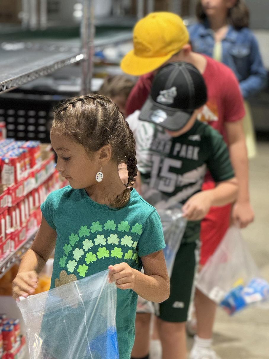 League members’ children packing weekend food bags for Food In Tummies (FIT)