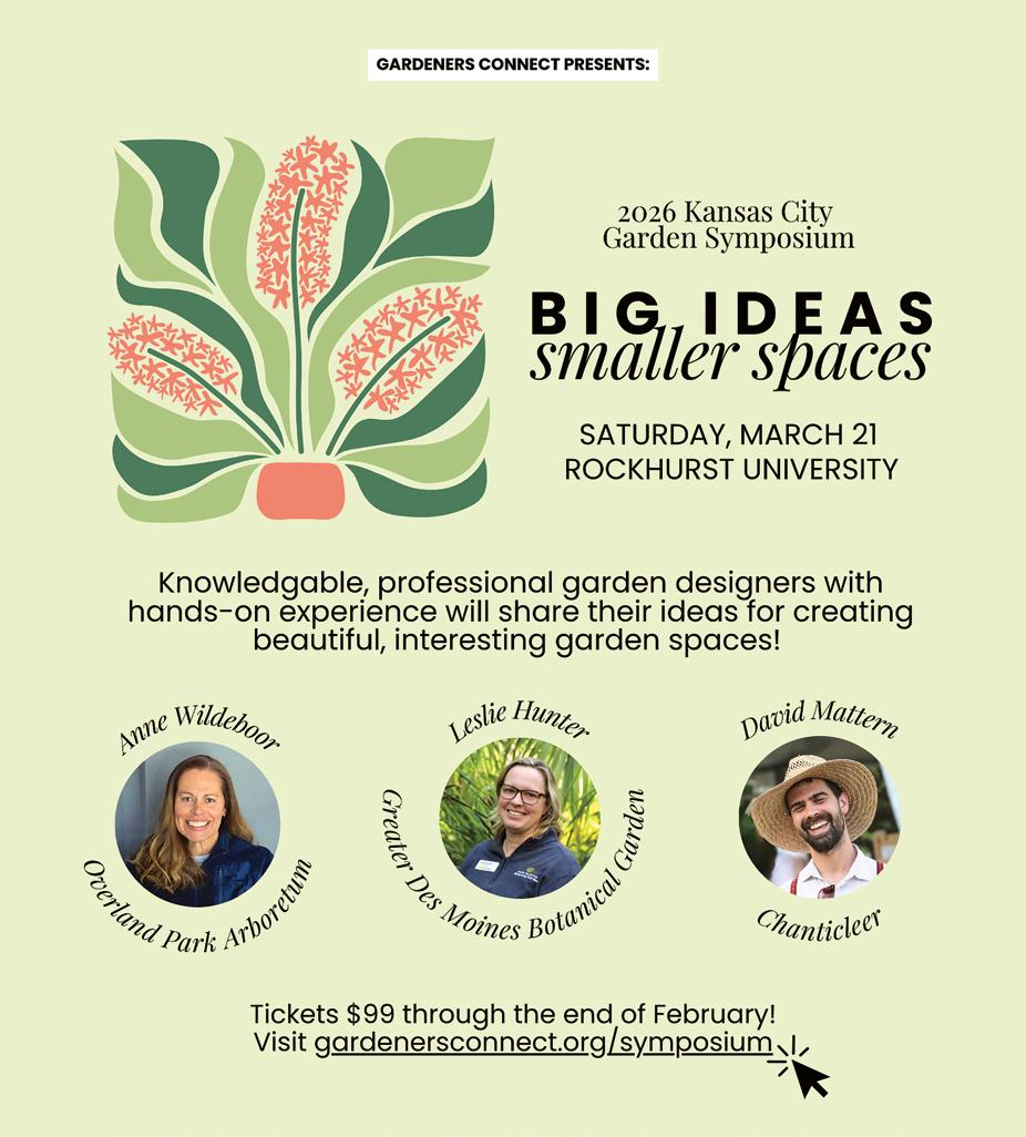 deboor, Horticulture Supervisor for the Overland Park Arboretum and Botanical Gardens, will take you through Informed Plant Selection and Placement. Anne, a K-State graduate, has spent the majority of her career in public horticulture, including over a decade at the OP Arboretum, where she is responsible for plant design and selection, greenhouse production, and maintenance of all display gardens. Anne is a frequent presenter to gardening groups and contributor to gardening publications. You’ll get to see Anne’s examples of the mantra, “right plant, right place,” as she provides useful explanations of successful (and unsuccessful) plant selections.