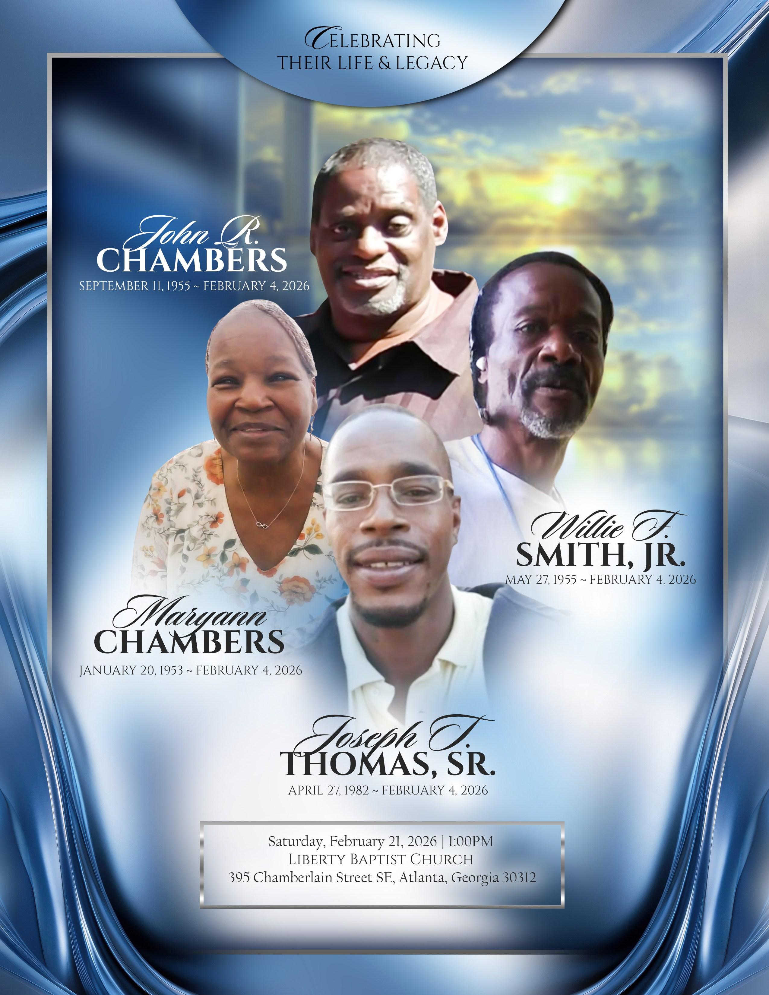 Maryann Chambers was born January 20, 1953 in Atlanta, Georgia as the eldest of 8 children. From an early age, Maryann carried the responsibility of being the big sister with strength, love and devotion to her family. She departed this life on February 5, 2026. Mary Ann was preceded in death by her beloved parents, Willie Frank Smith, Sr., & Christine Hicks-Minor; children, Denise, Sonya and Ricky; brother, Willie Frank Smith, Sr., and husband, John Chambers.