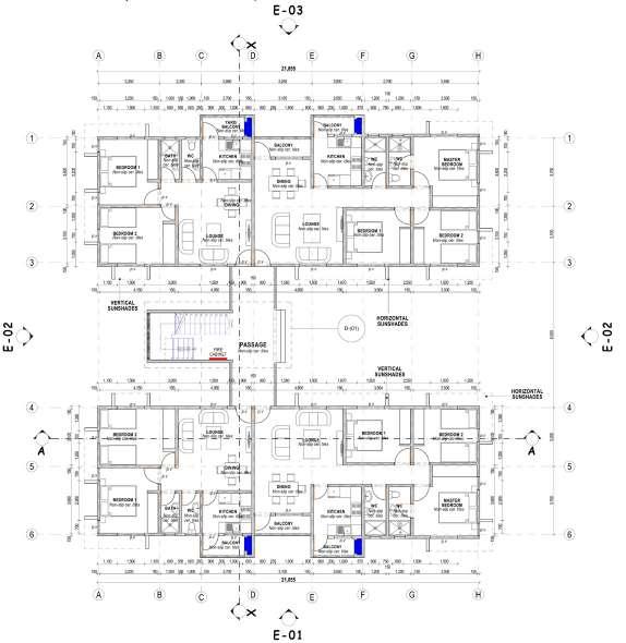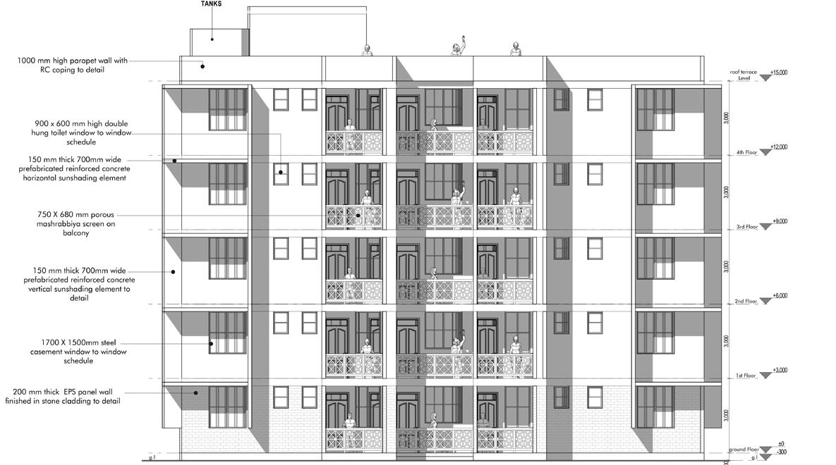 - The blocks are oriented in east- west direction to avoid direct sunlight.