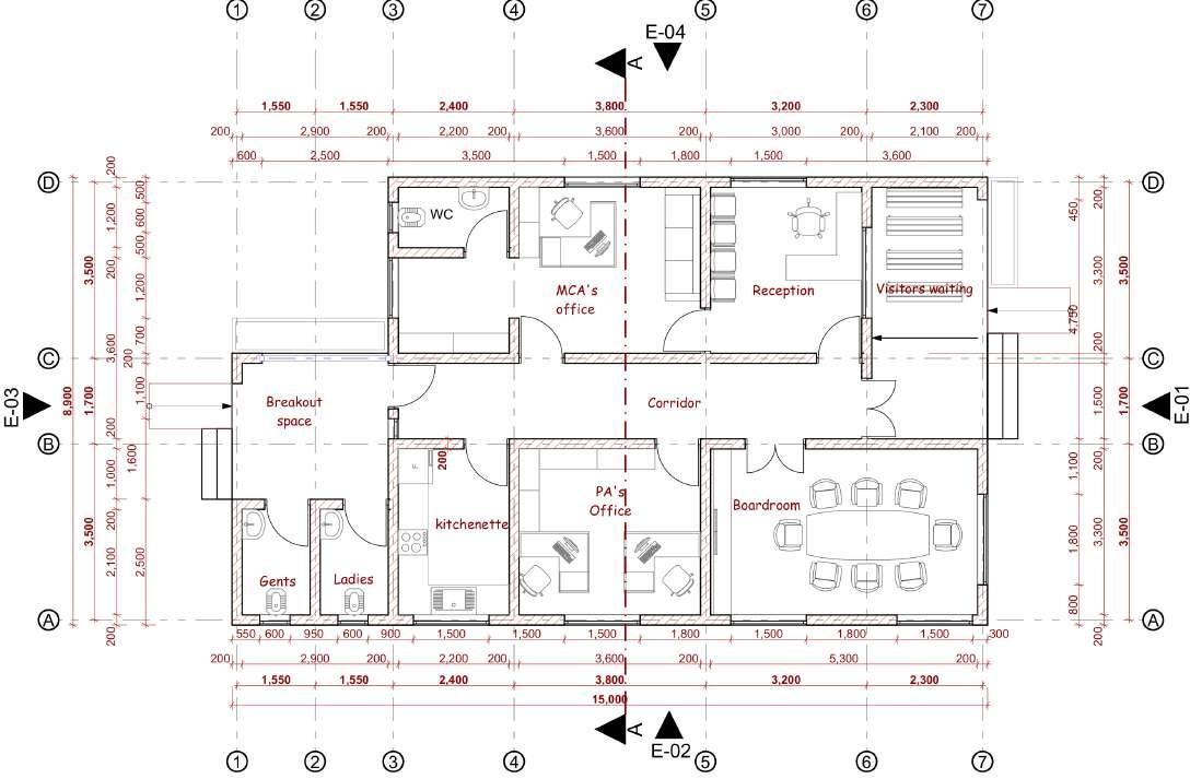 The task involved designing an office block proposal for members of county assembly for various wards in narok county.
