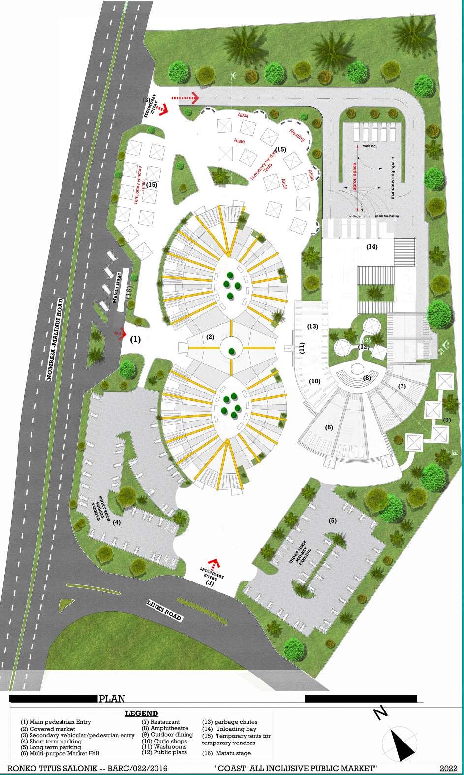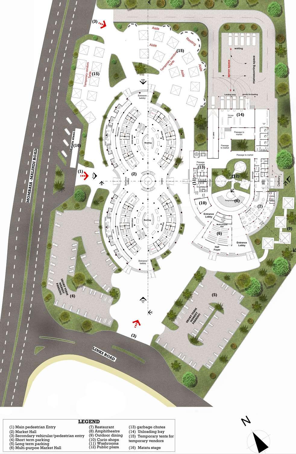 The design of this project is informed by the research thesis entitled “Role of spatial qualities in enhancing public markets experience” done by the author. The study findings indicated that for a public market to be successful the design of social spaces should be considered of equal importance as economic spaces. The thesis research ascertained that in existing public markets there was little attempt to design them as inclusive spaces accessible to people of all types.