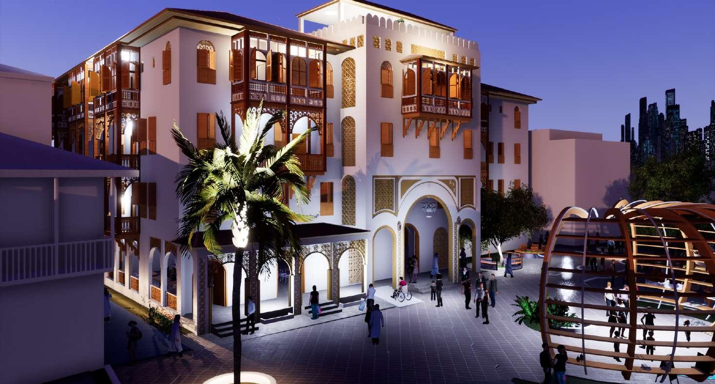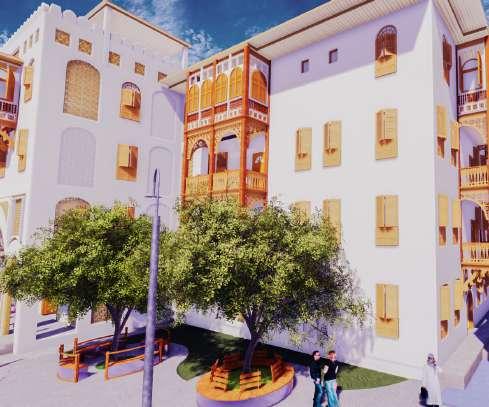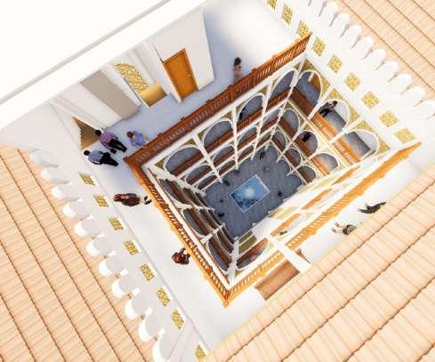 » Use of a Central courtyard with a water pool to pre-cool hot air entering the building, courtyards also have social, cultural and religious value in the architecture of buildings in old-town.