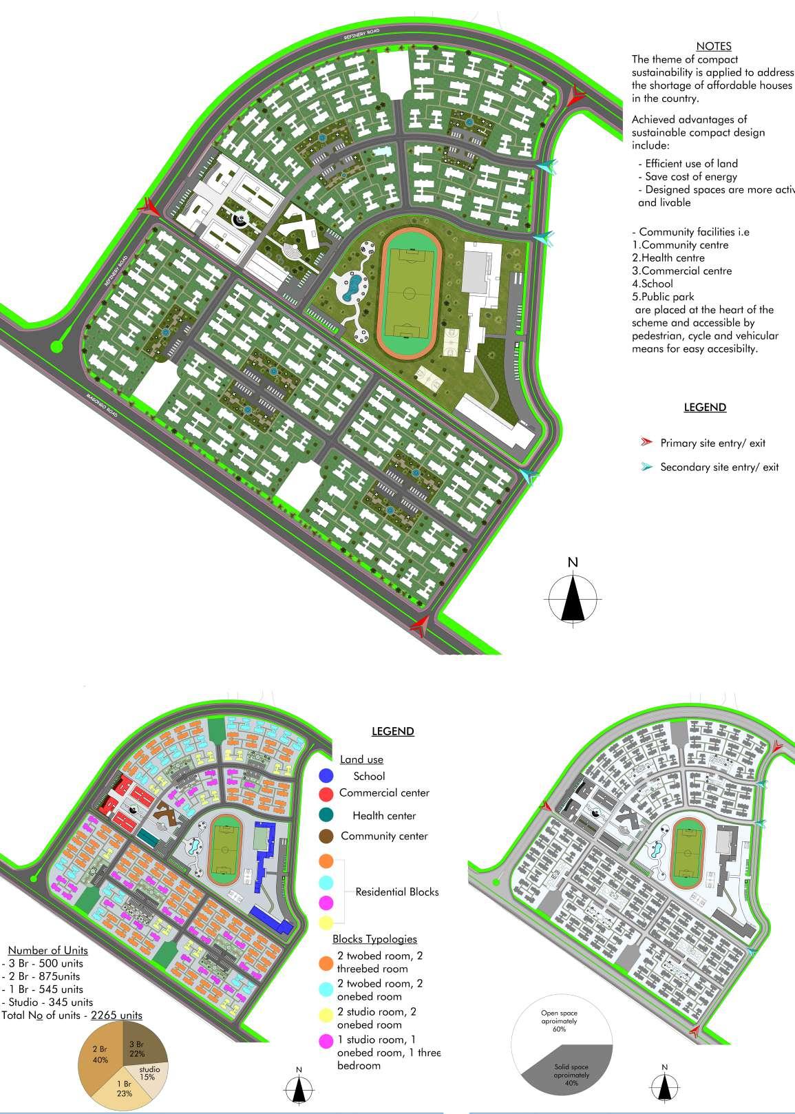 This planning and urban design concept, encourages relatively compacted residential land use with mixed land uses in order to get more open green space. It is favorable when proposed available land is limited and the is a need for maximum utilization as it was the case in the project. The proposed layout foster walking, cycling, low energy consumption and reduced pollution.