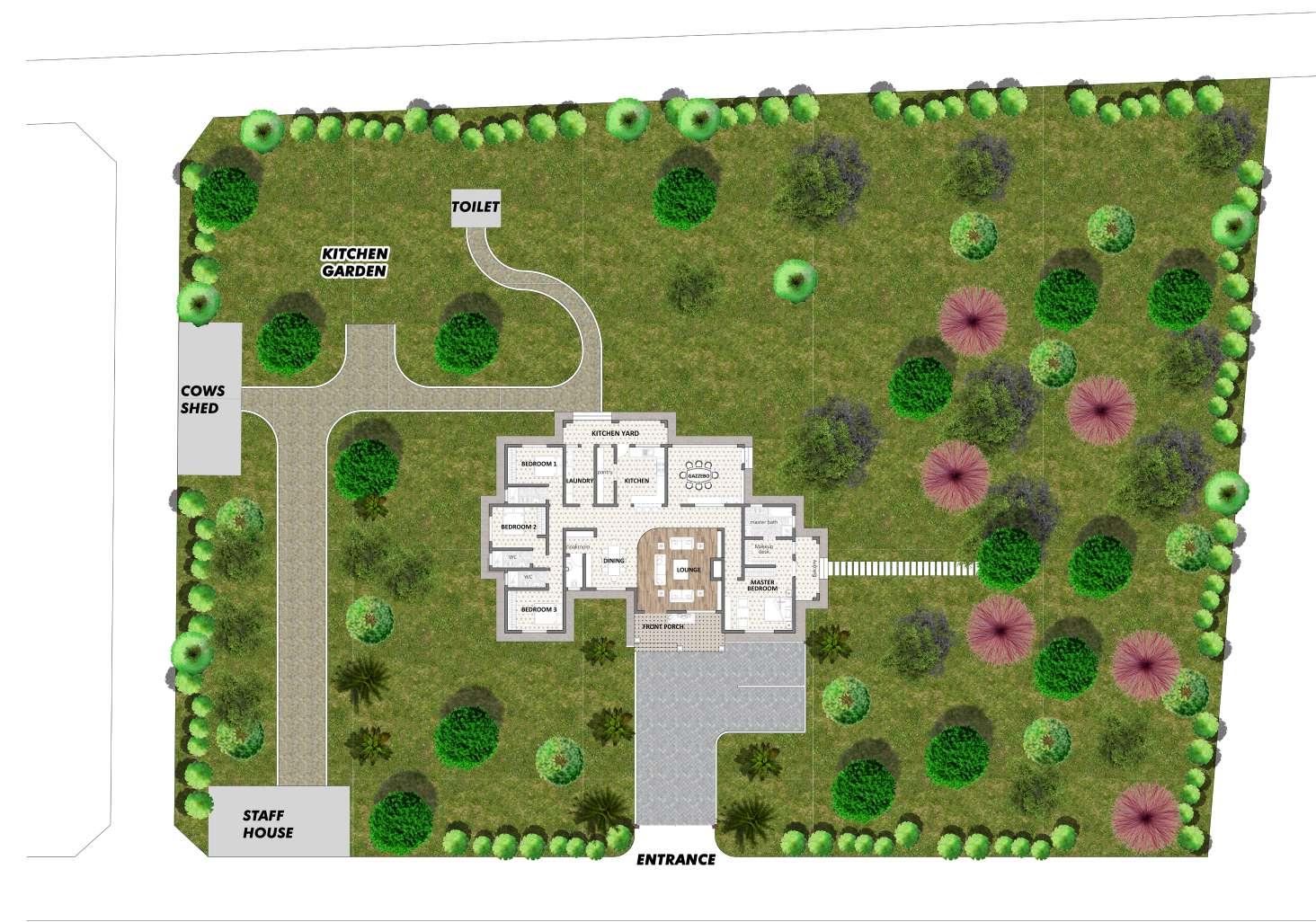 In this project the client requested a layout in which bedrooms are located on one side for easy monitoring of their children and visitors. He futher requested a pergola for relaxing, entertaining, and gatherings.