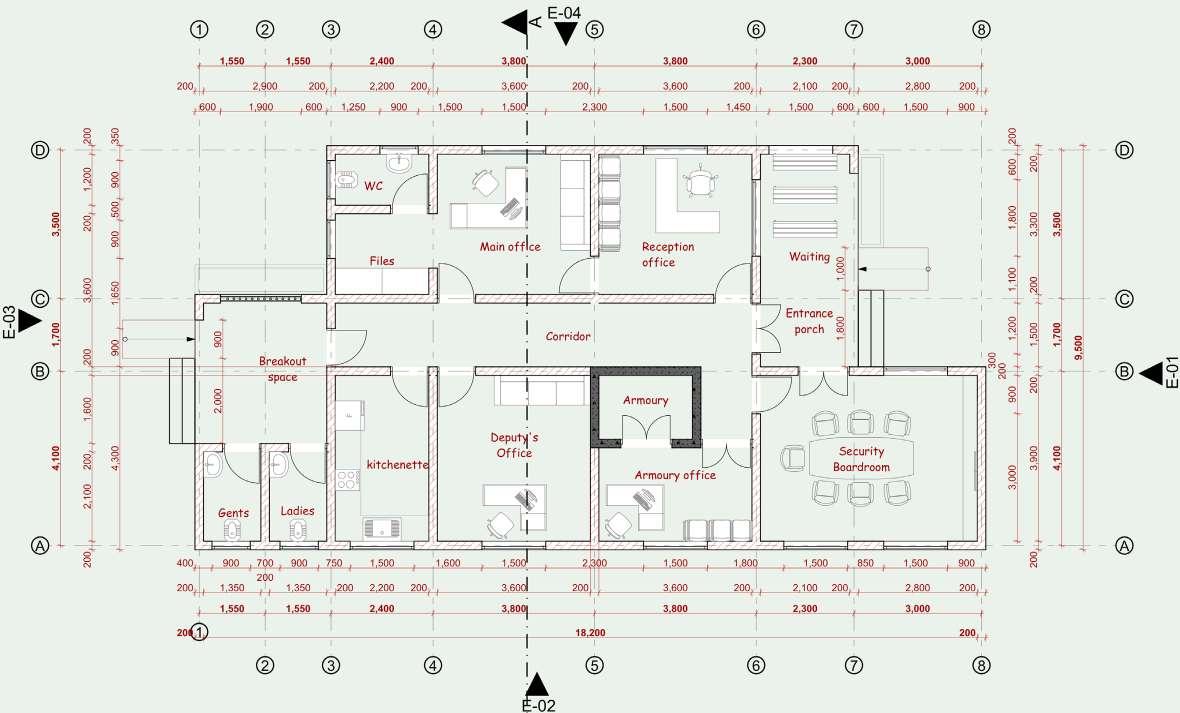 The task involved designing an office block proposal for security officers.