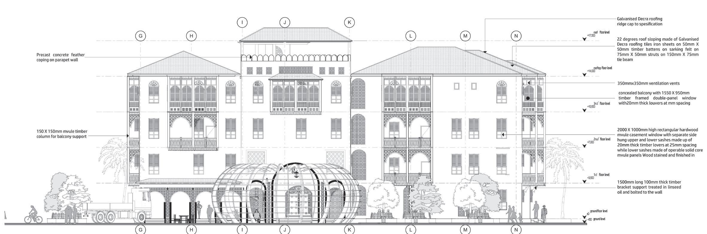 The form of the market borrows from the streamlined shape of a dhow. -Dhows were used to transport goods between Africa and Asia in the pre-modern period via Mombasa.